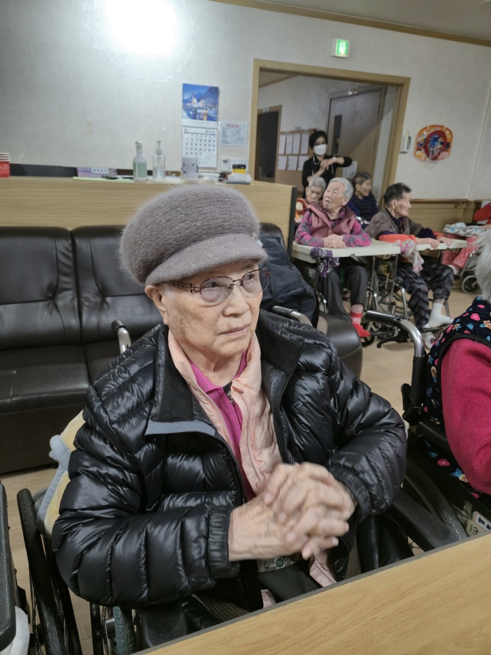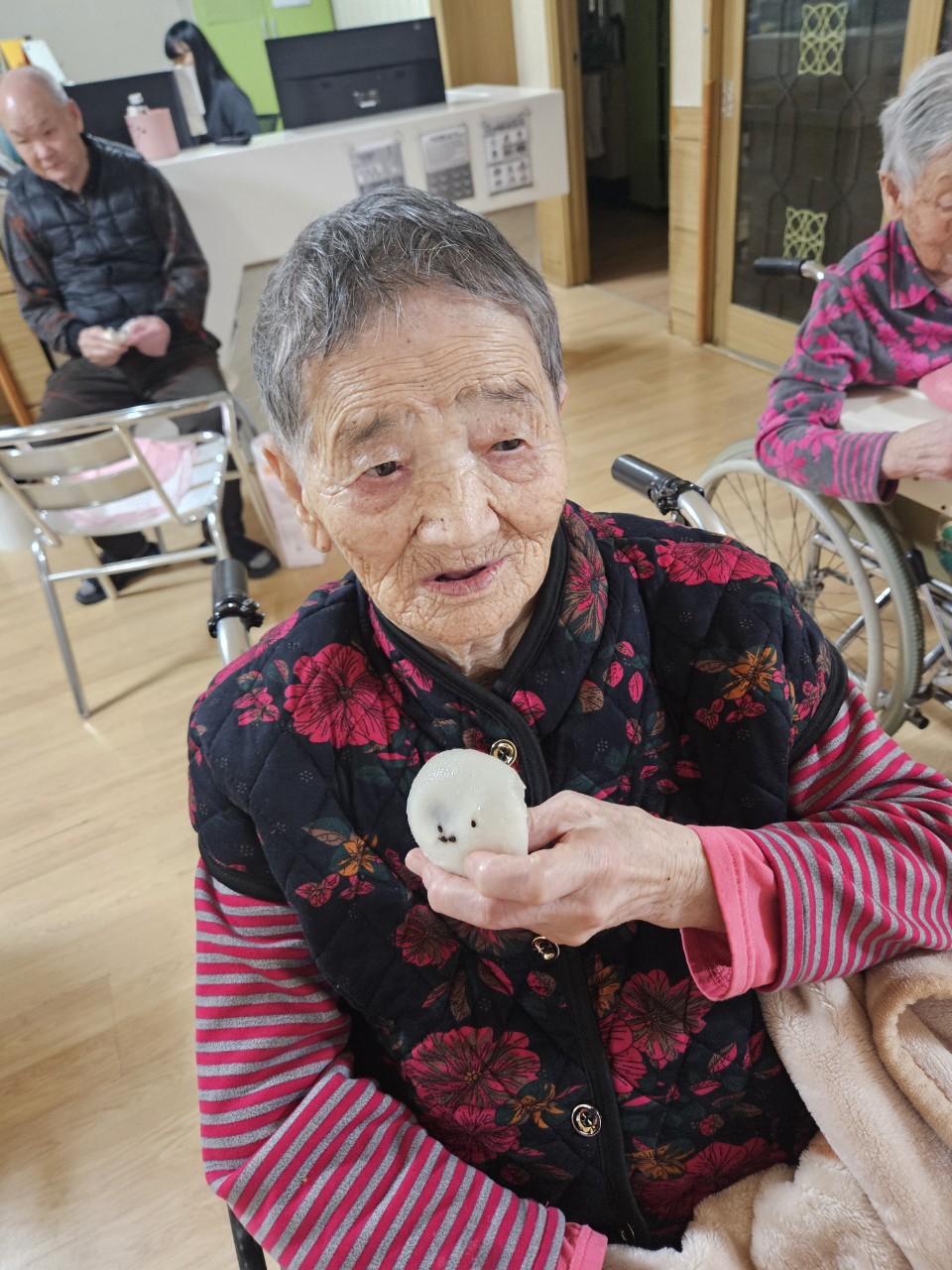 ① 어르신을 중앙홀로 모신다.