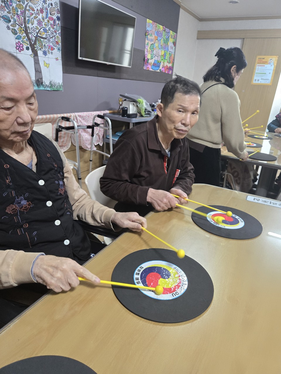 소근육 자극을 통하여 뇌세포를 자극하여 감각기능을  향상시키고 치매 예방을 한다