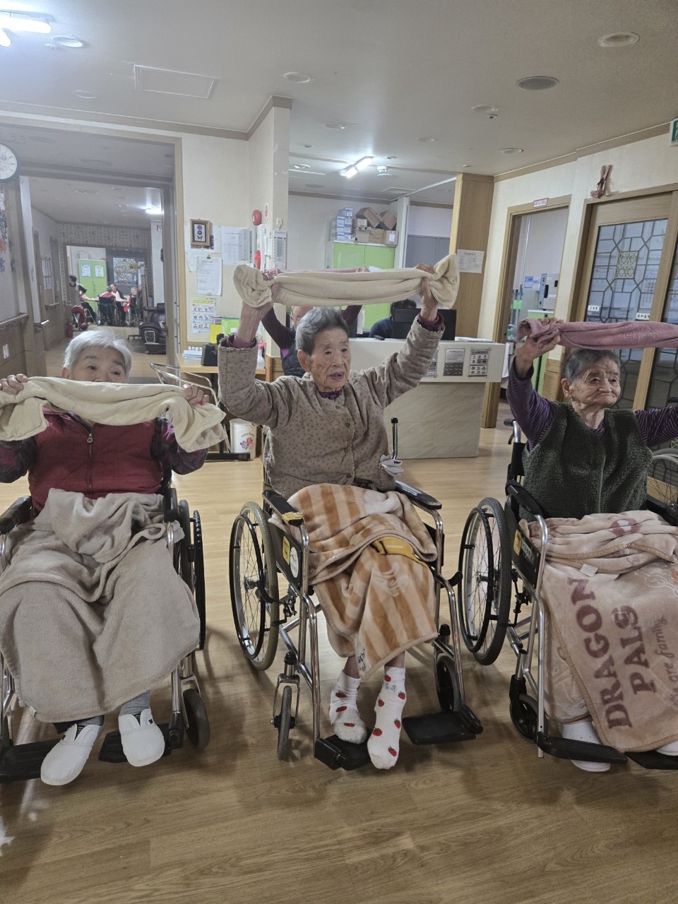 ② 타월을 하나씩 배분하여 어르신들이 받으실 수 있도록 한다.
