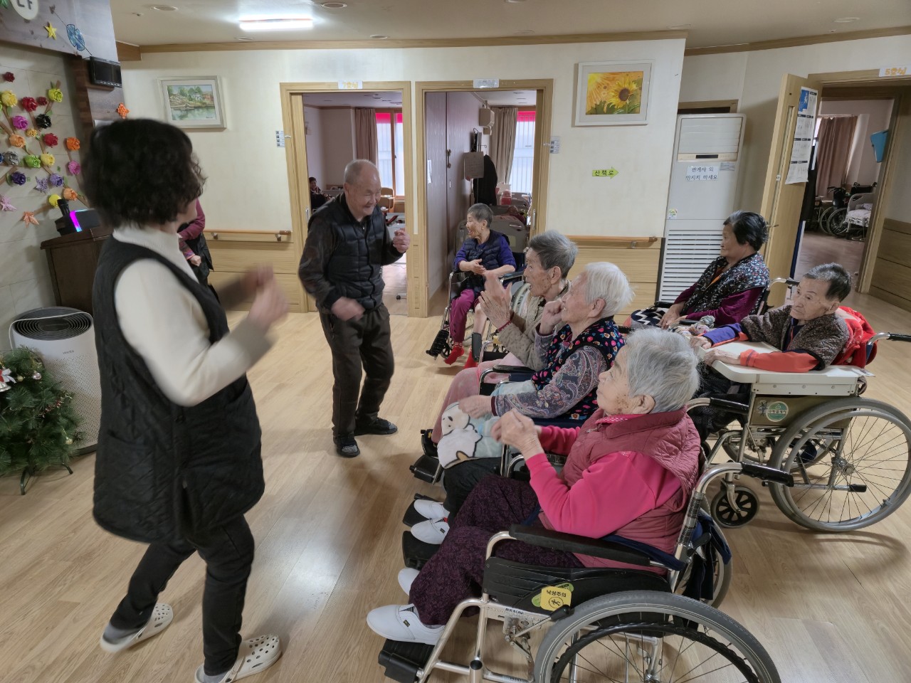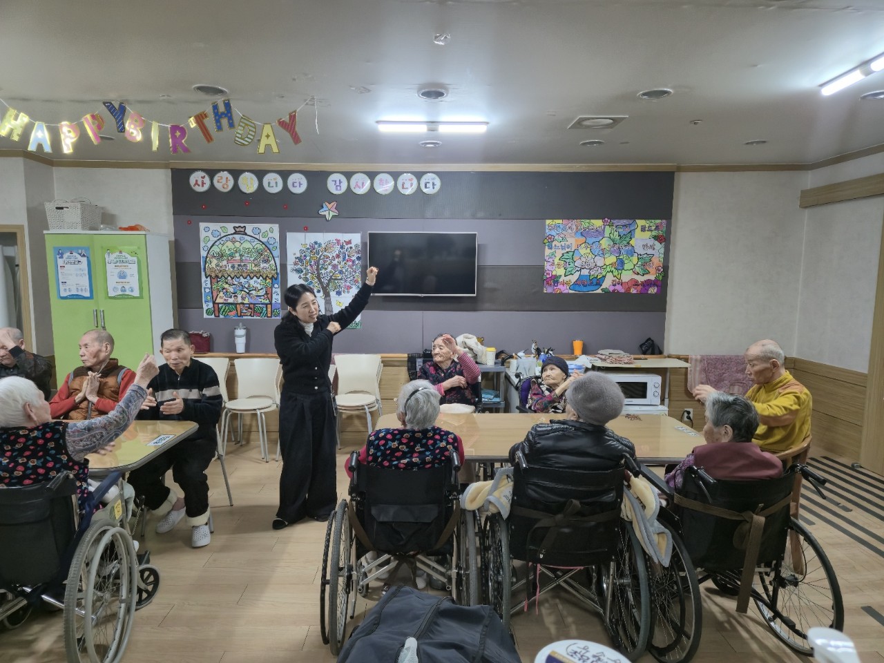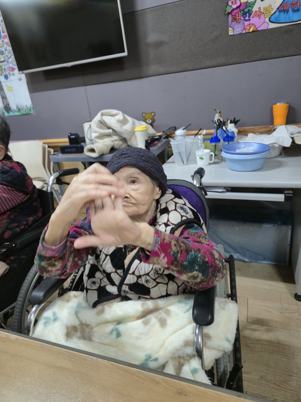 ③ 앞에 선생님이 하시는 것을 보고 따라 하실 수 있도록 유도 한다.
