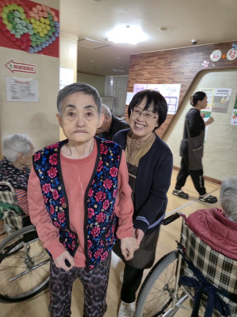 ④ 옆에서 어르신을 격려해 드리고 힘든 부분은 옆에서 도와드린다.