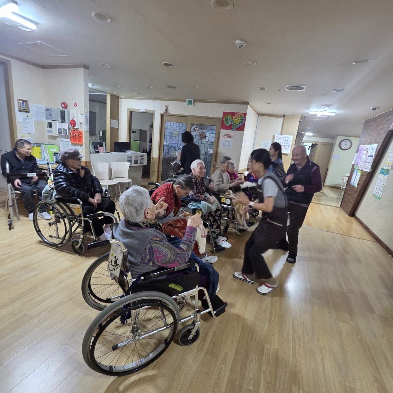 ① 어르신들을 중앙홀에 모신다.