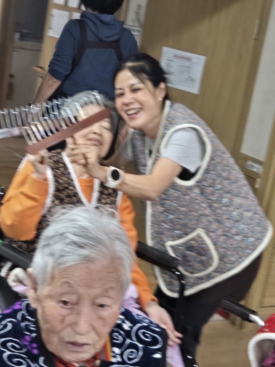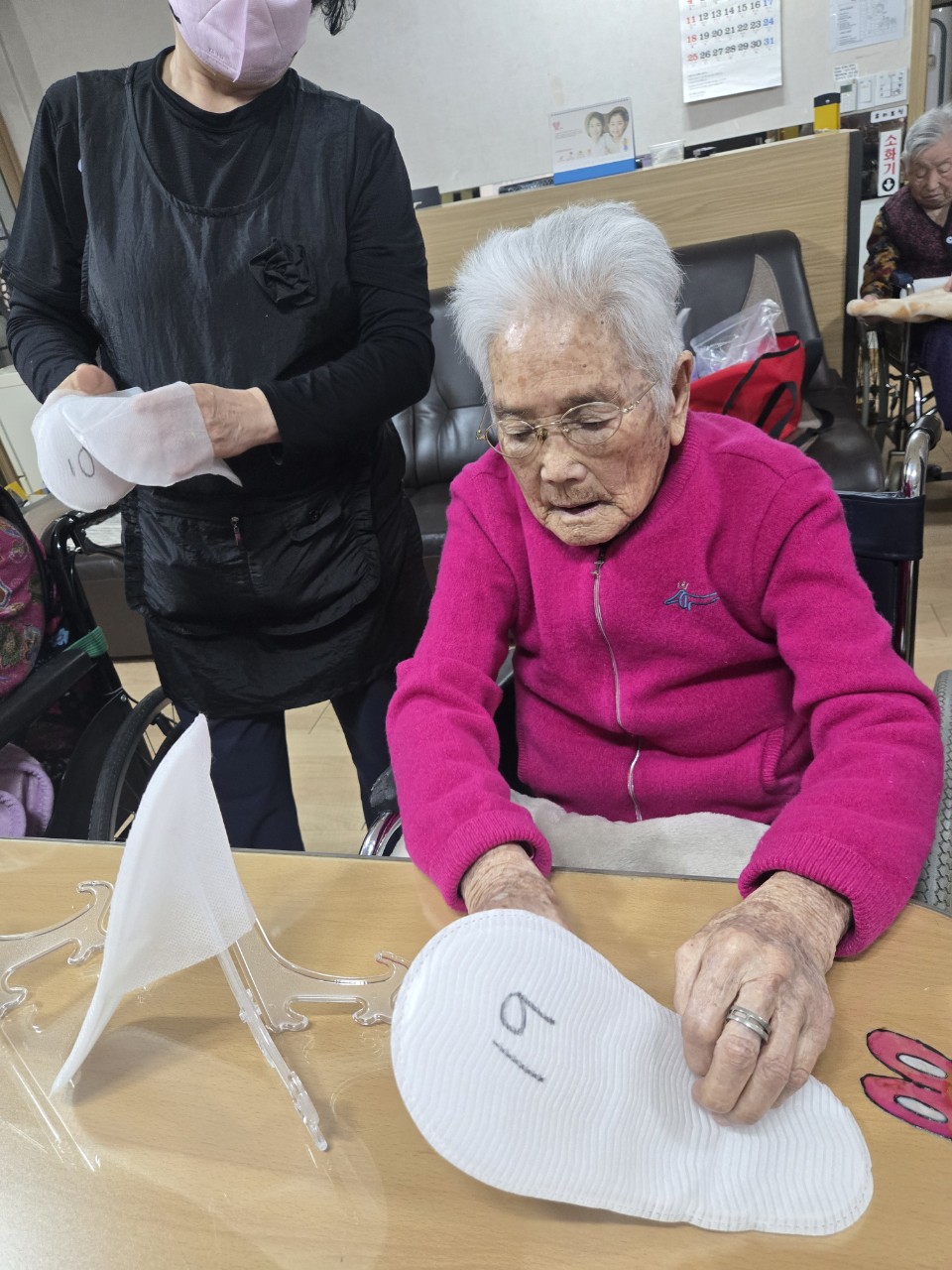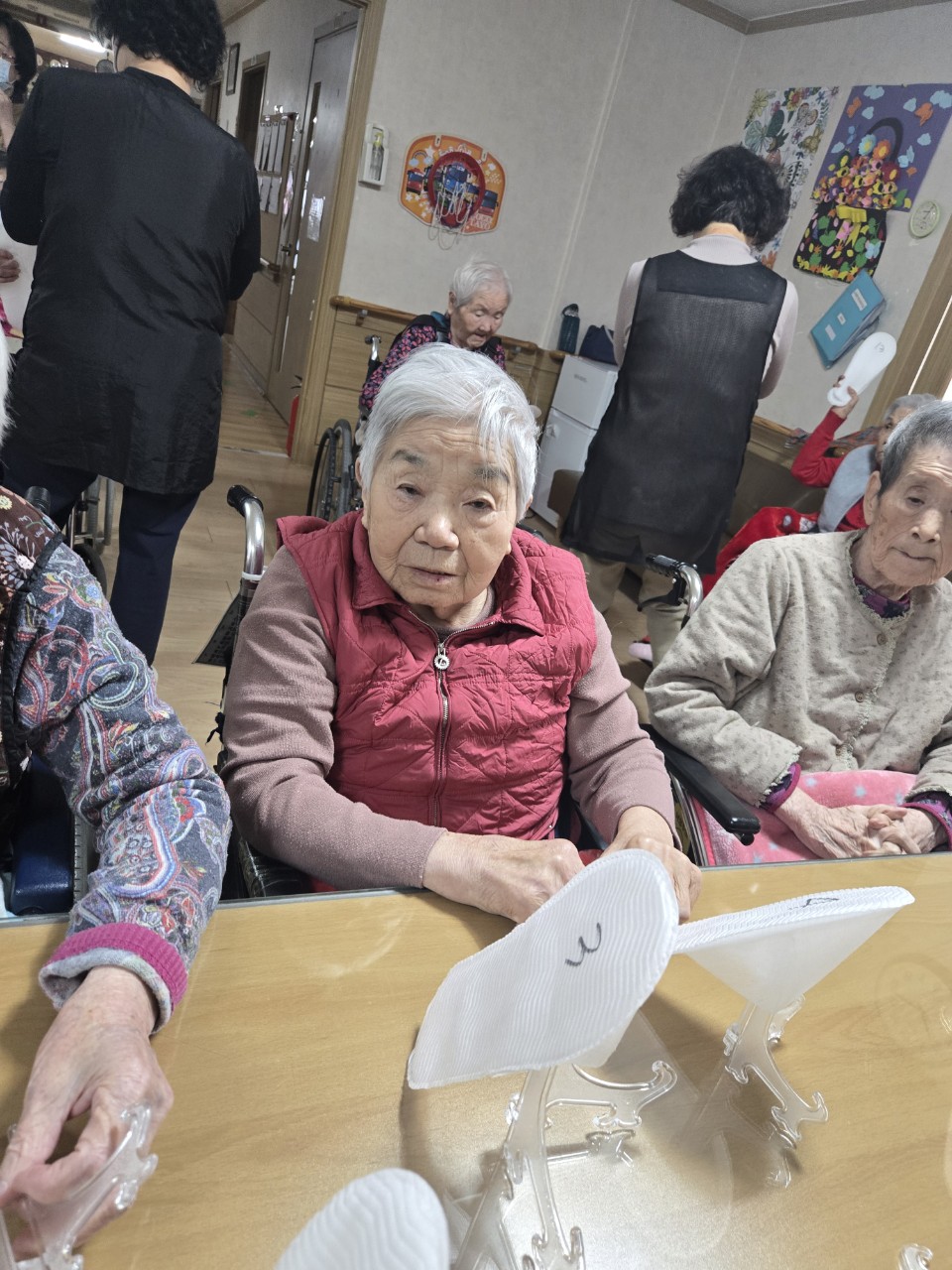 4. 잘 안되는 어르신들을 옆에서 도와준다.