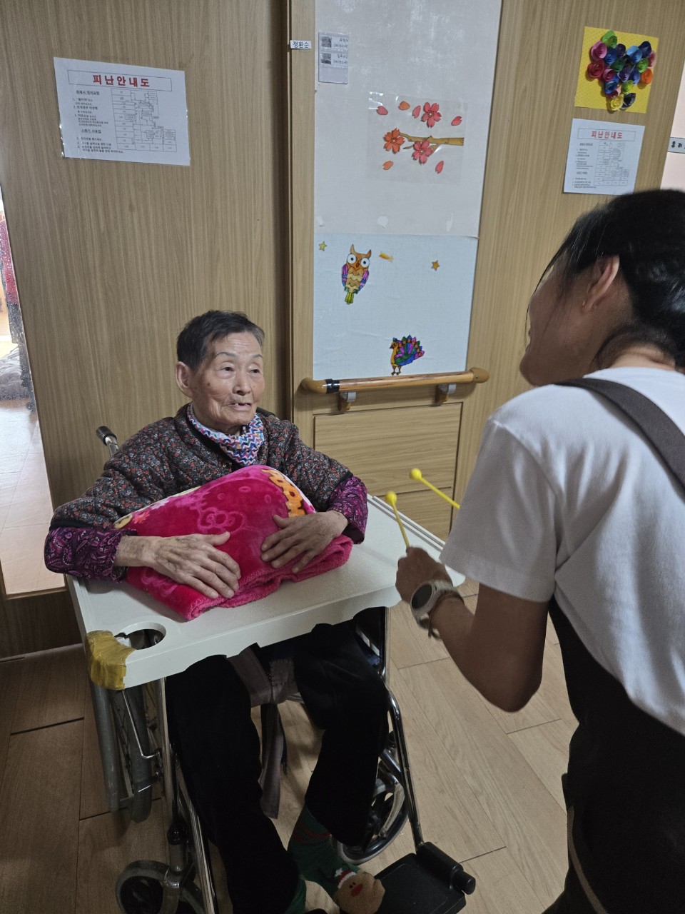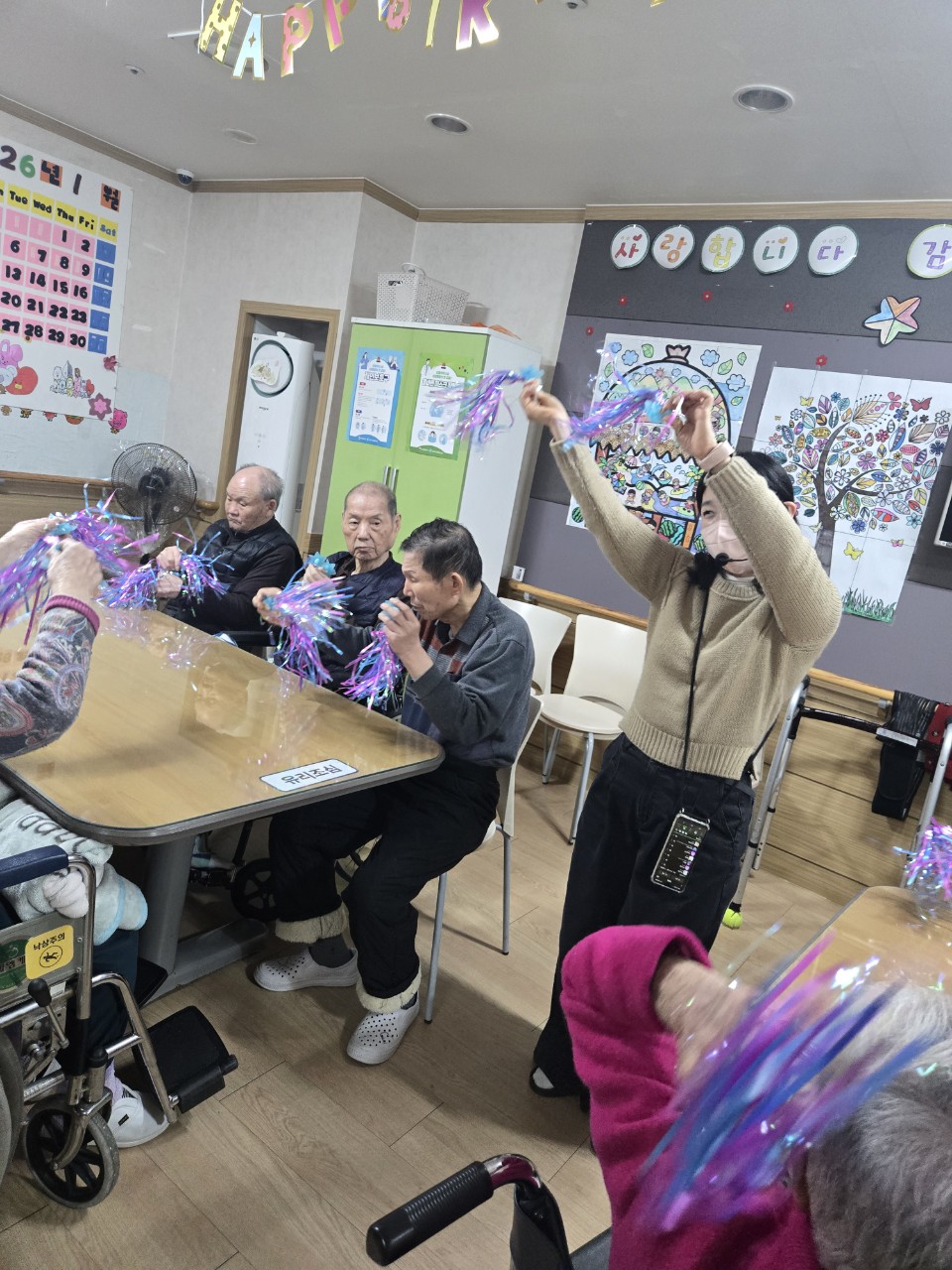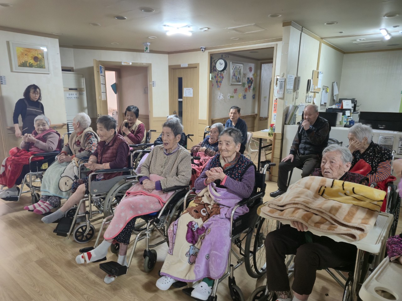 2. 어르신들이 음악을 들으며 편하게 휴식하시고, 마음이 편안해 지도록 돕는다.