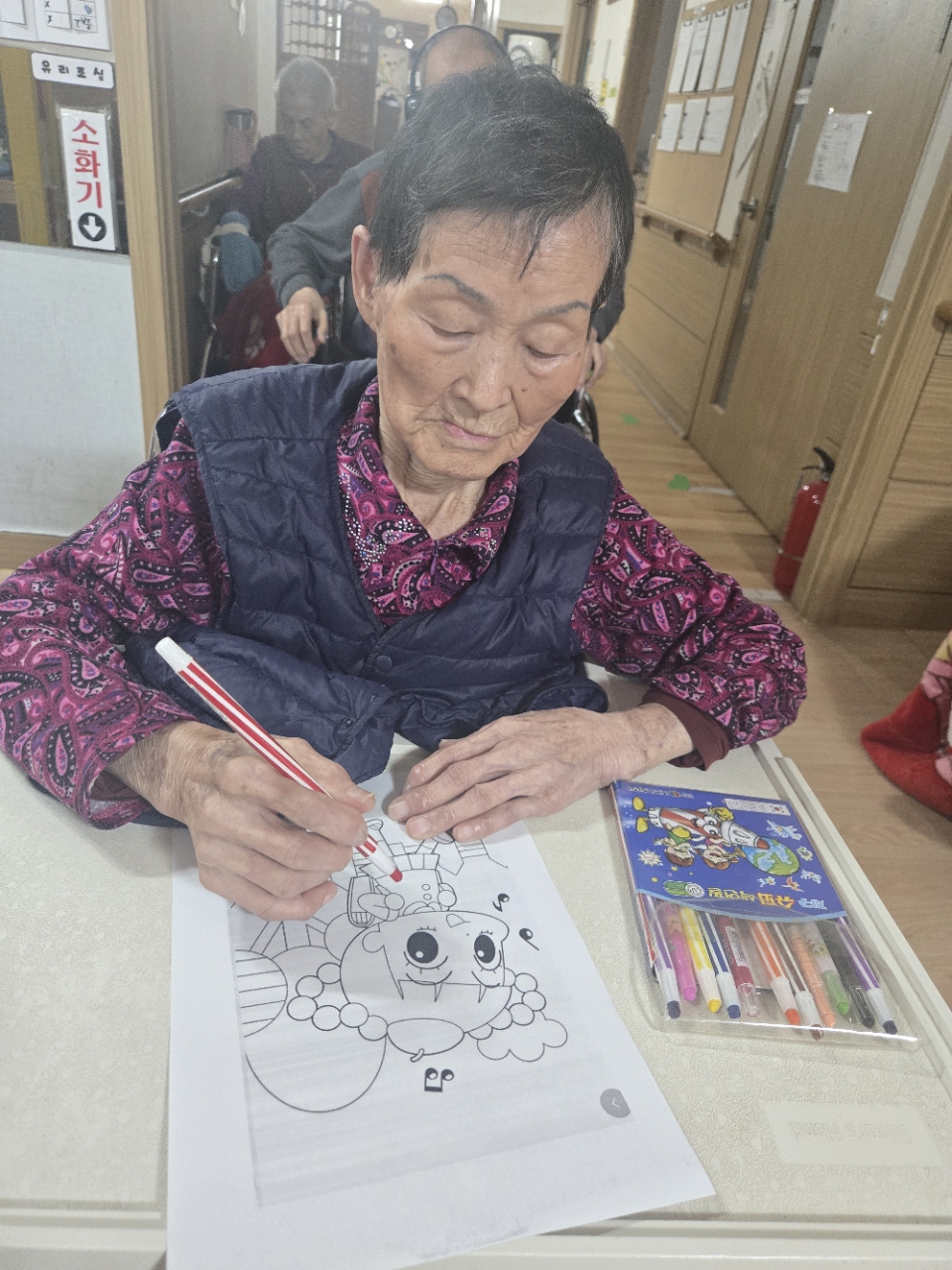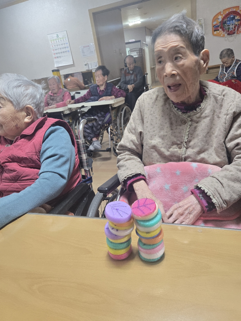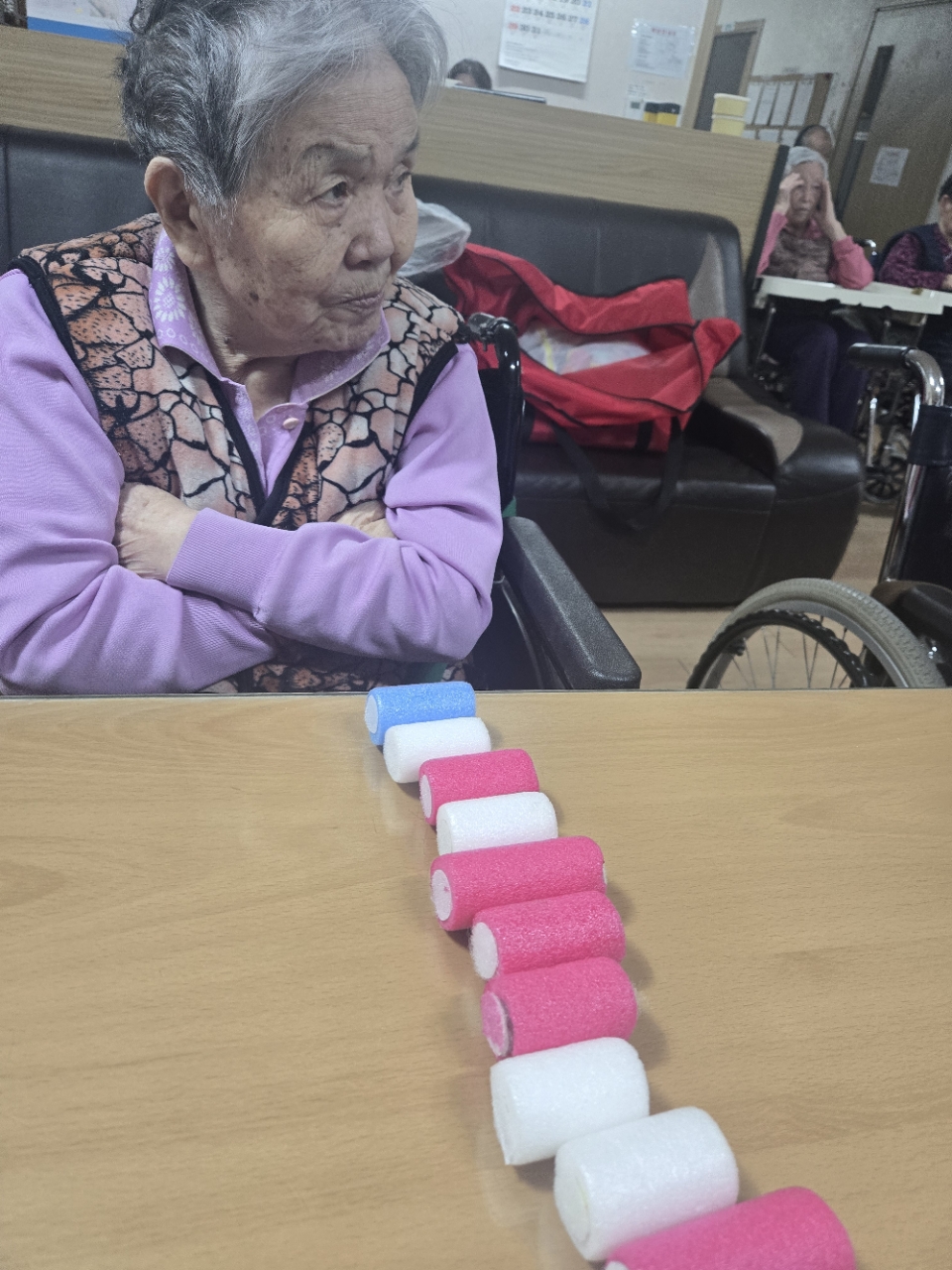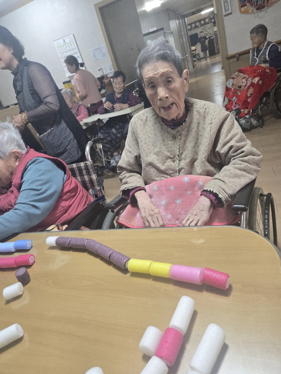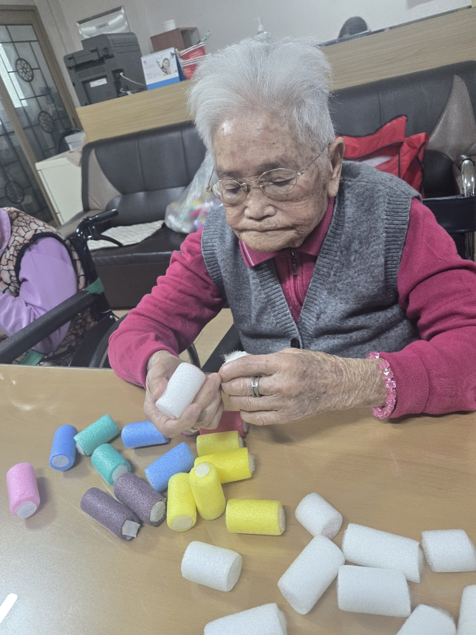 오늘은 아로마오일을 이용하여 후각을 자극하여 추억을 향수하는 와상 어르신의 신체 기능향상을위한 아로마 활동 프로그램시간입니다.