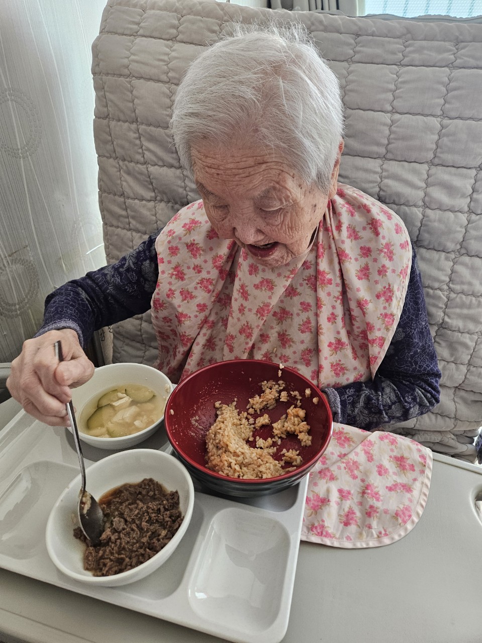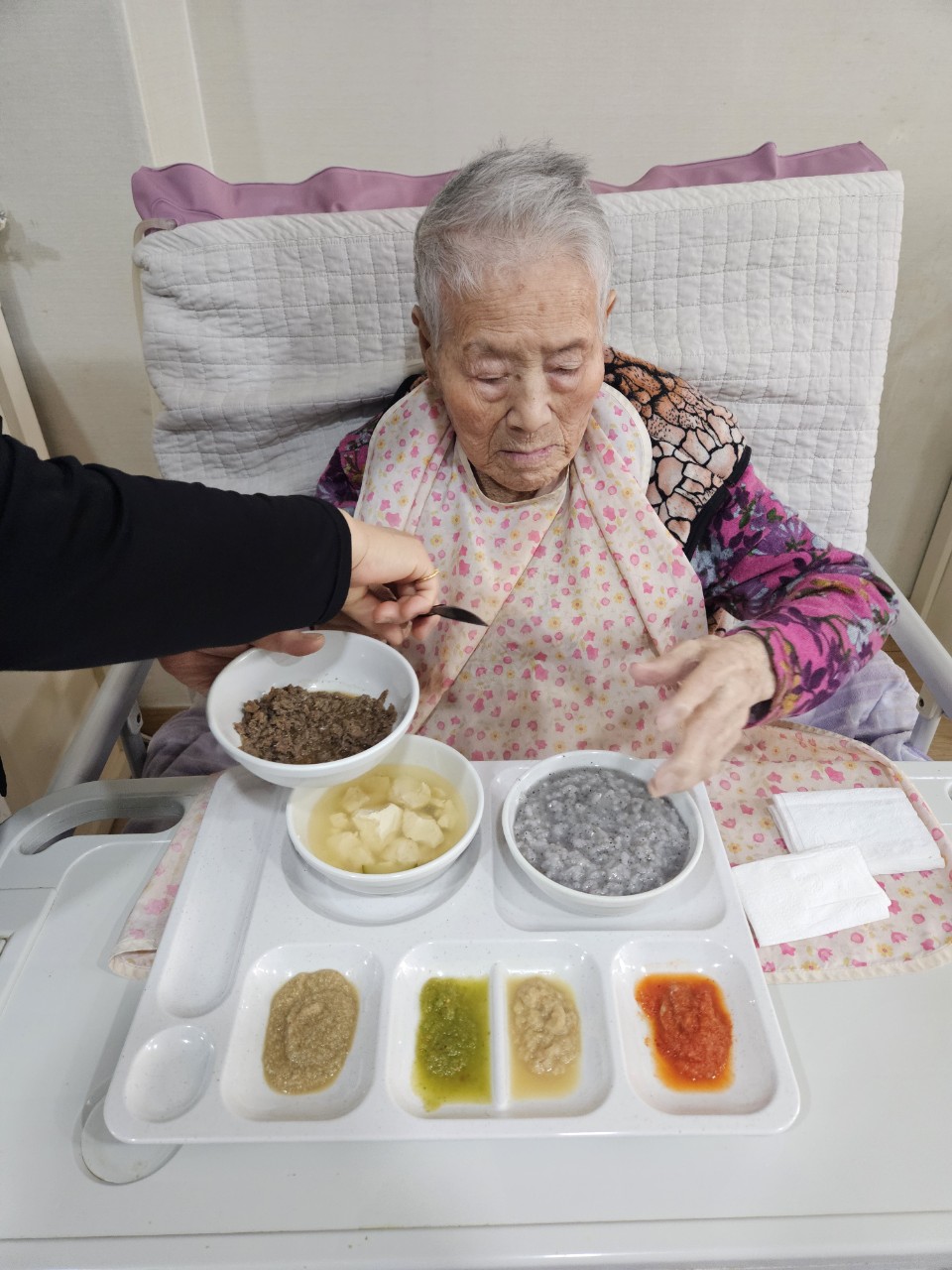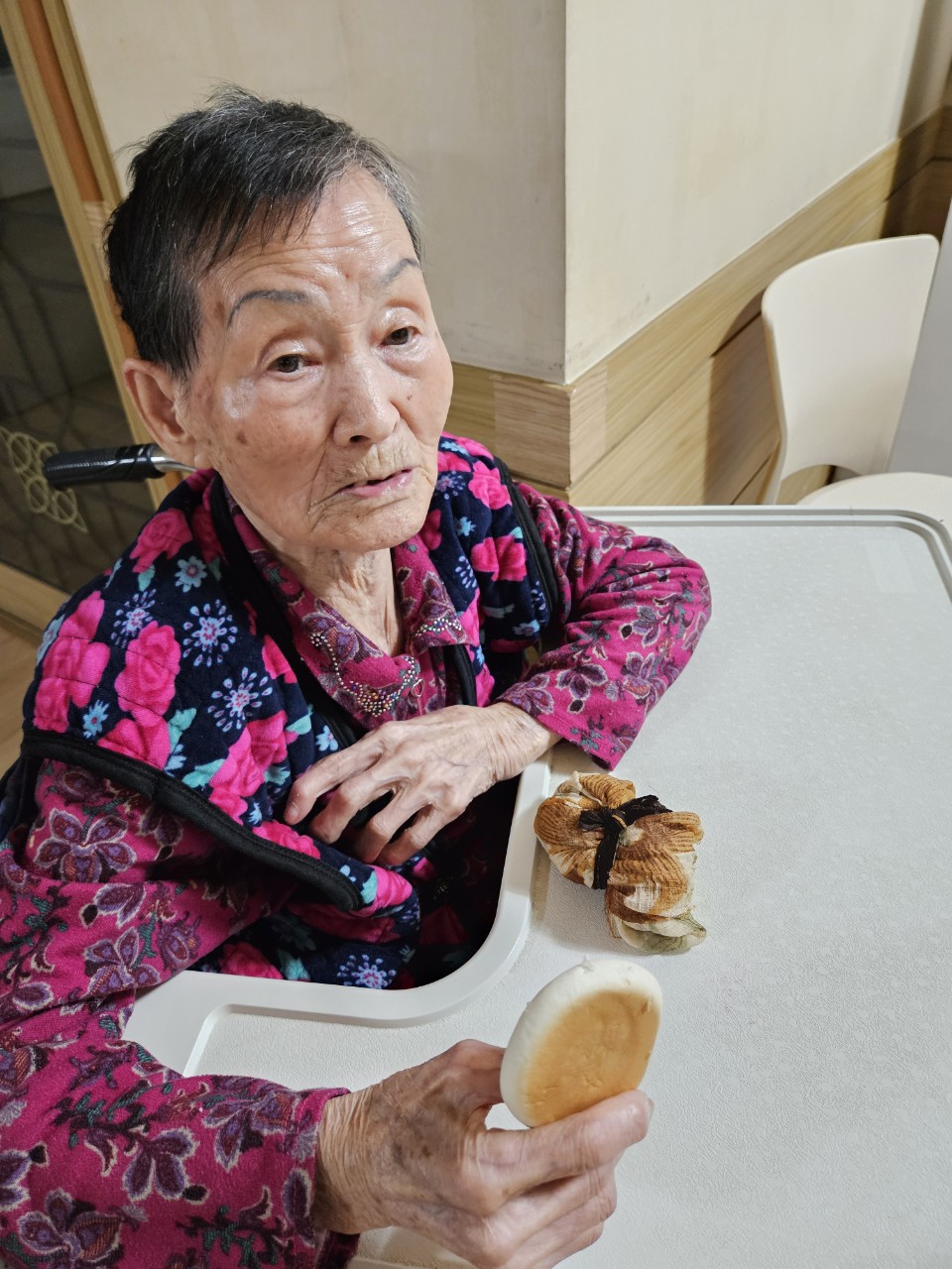 1. 어르신을 앉은 자세로 모신다.