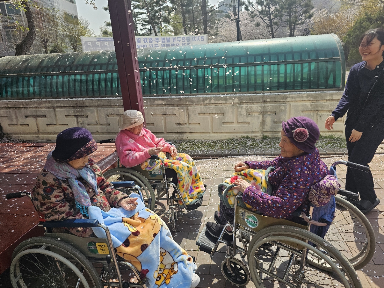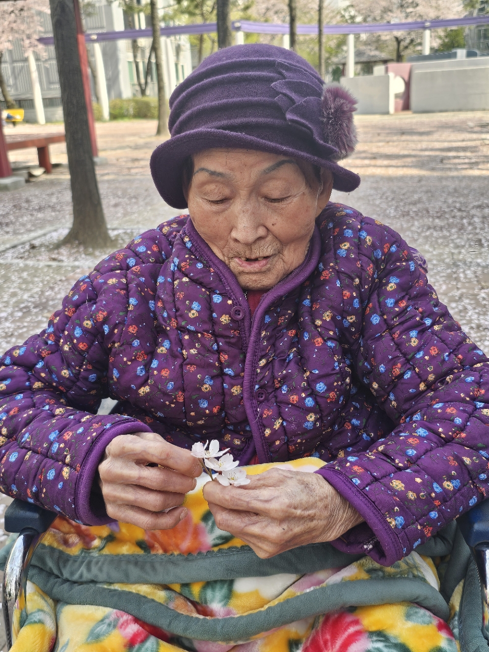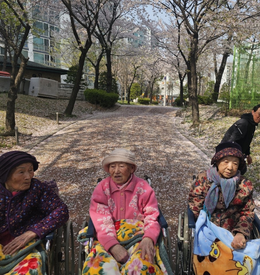 어르신들이 너무 좋아하시네요. 어르신들의 어린아이 같은 환한 미소가 벗꽃잎을 닮았네요. ^^