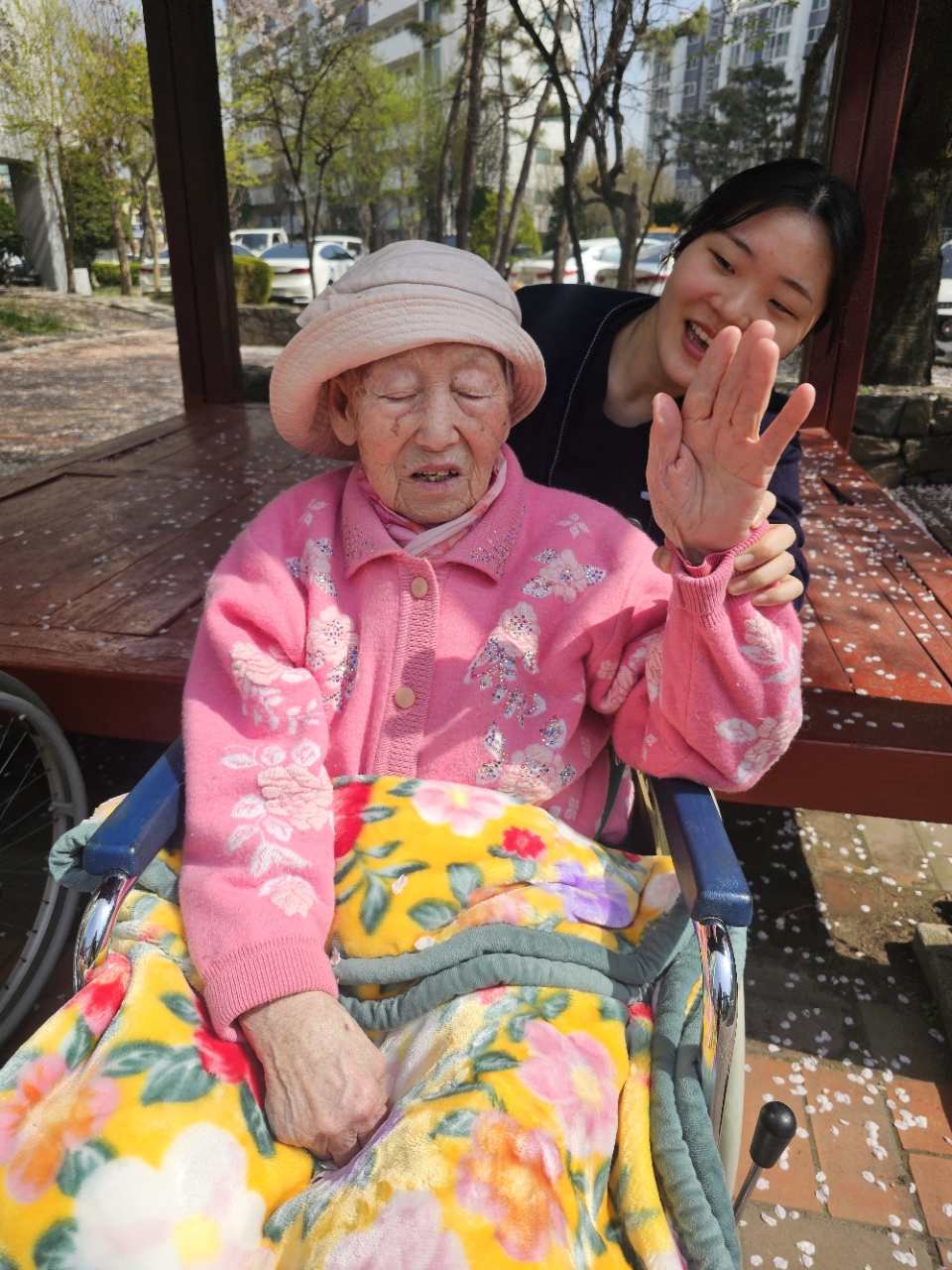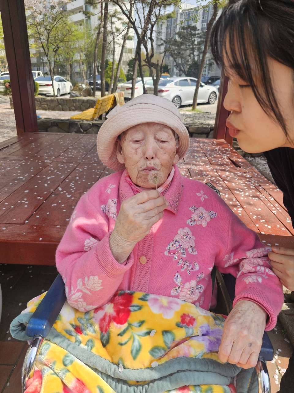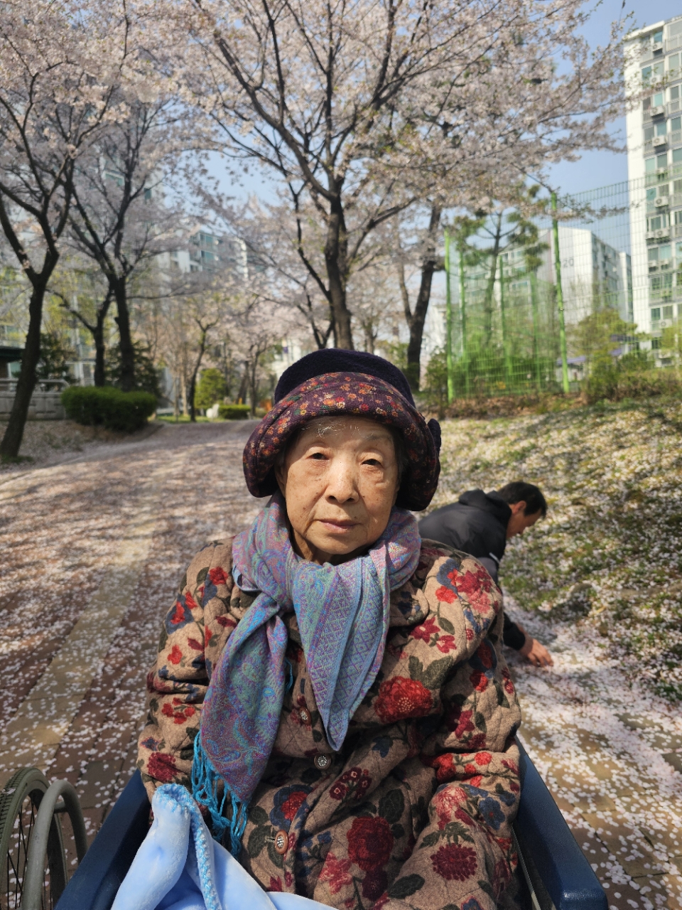 어르신들이 너무 좋아하시네요. 어르신들의 어린아이 같은 환한 미소가 벗꽃잎을 닮았네요. ^^