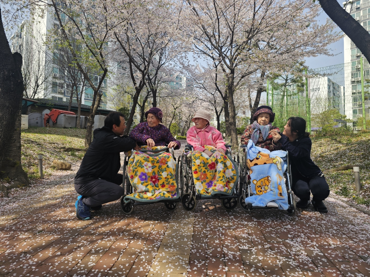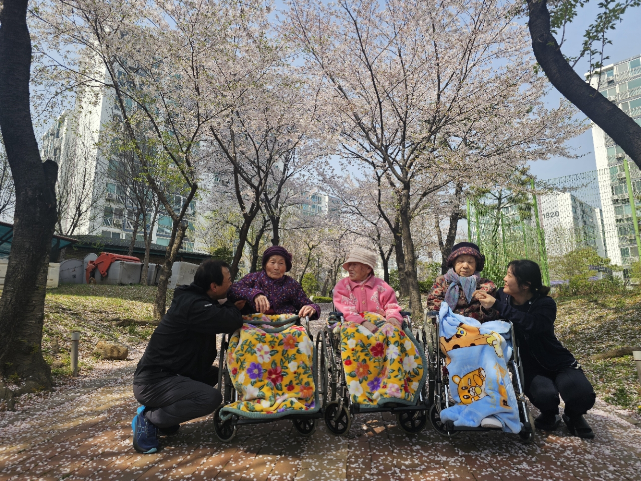 날씨가 포근해져서 어르신들 꽃구경 나들이를 하기로 했어요.
