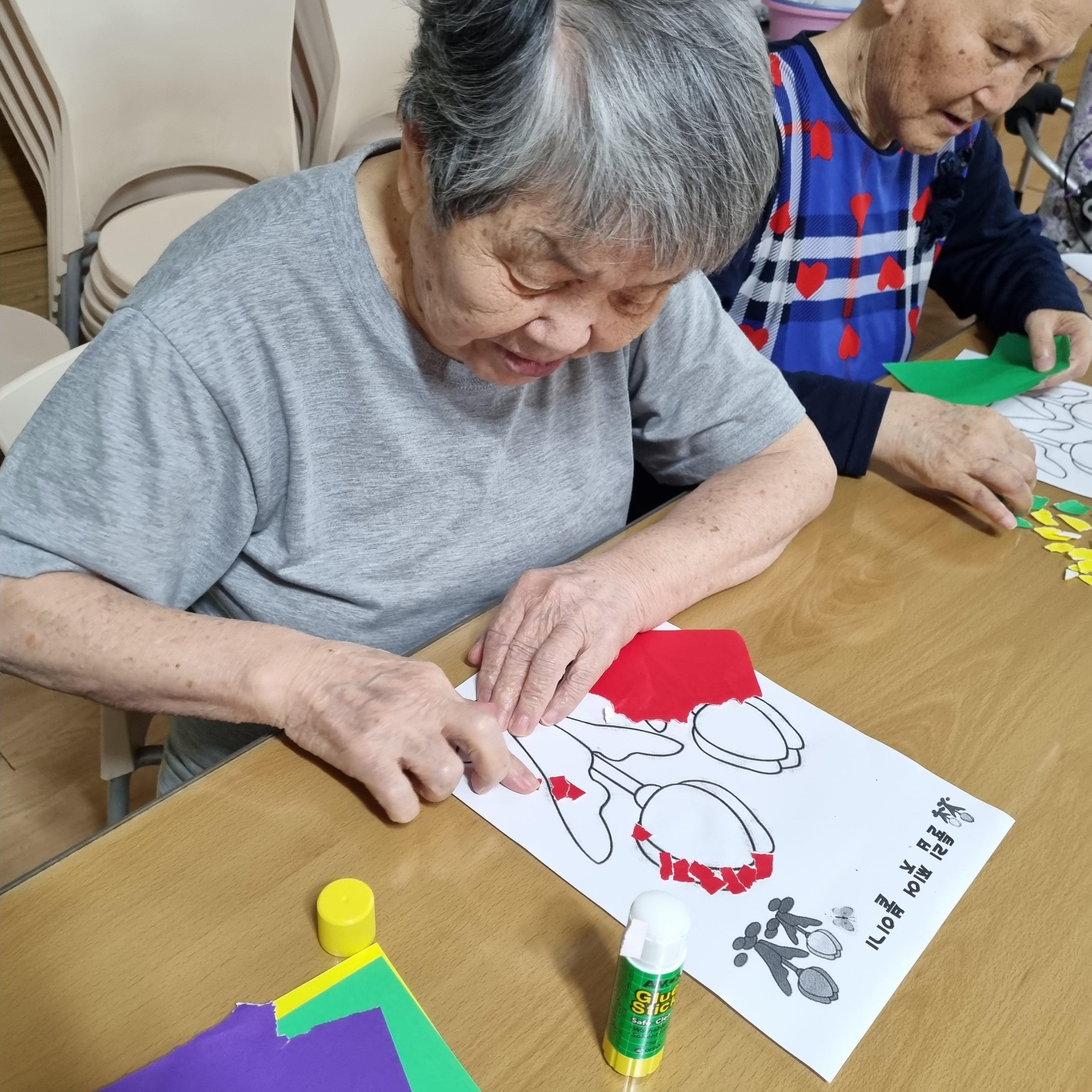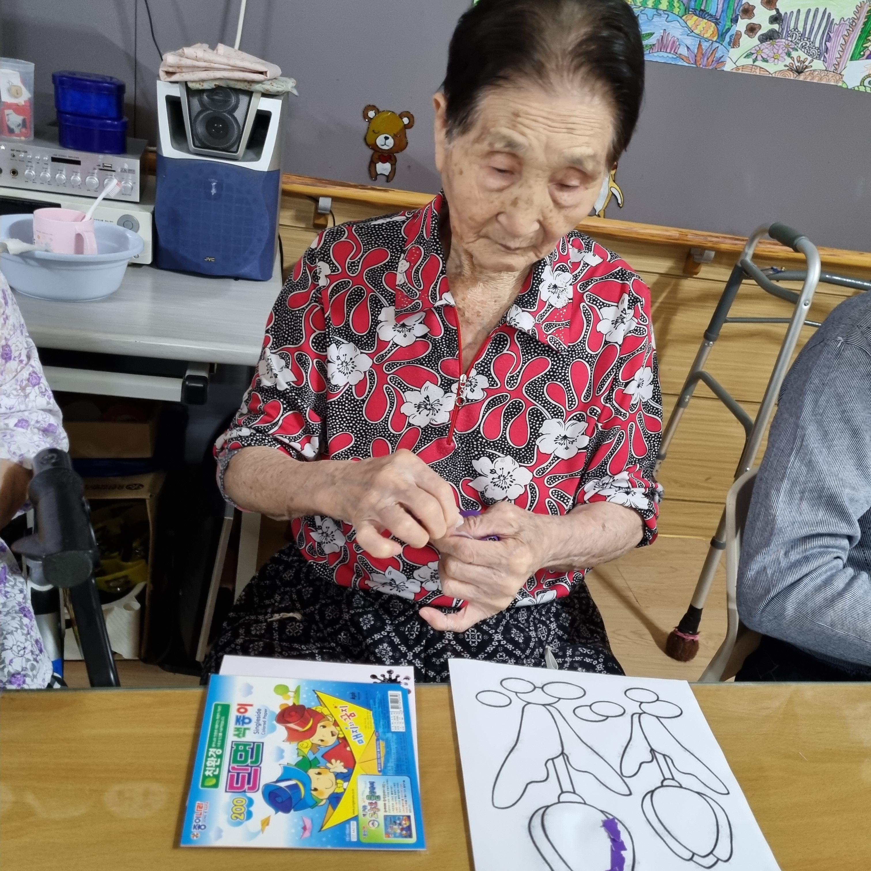오늘 오후에는 어르신 손바닥을 대고 그려 물감으로 찍기를 하였습니다