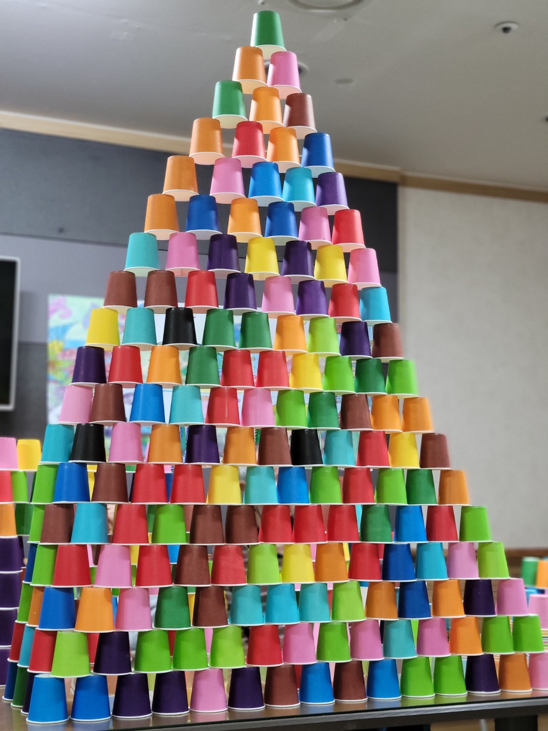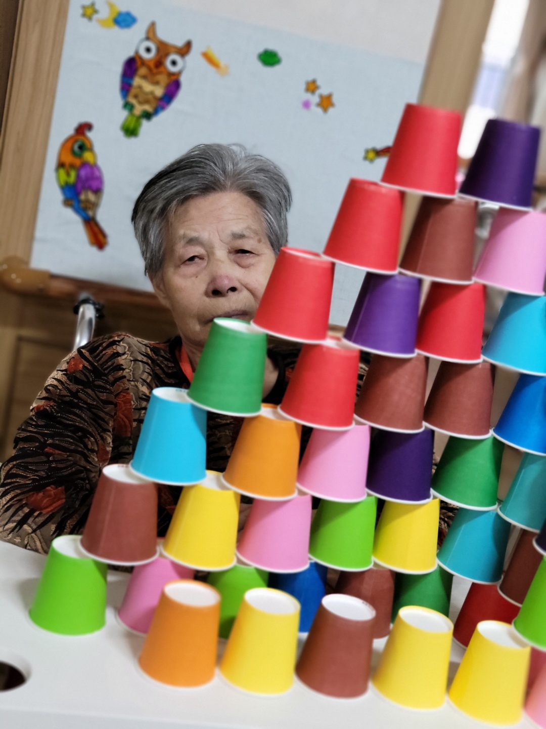 오늘 오후에는 어르신들이 즐기고 스릴있어하는 종이컵 쌓기를 하였습니다