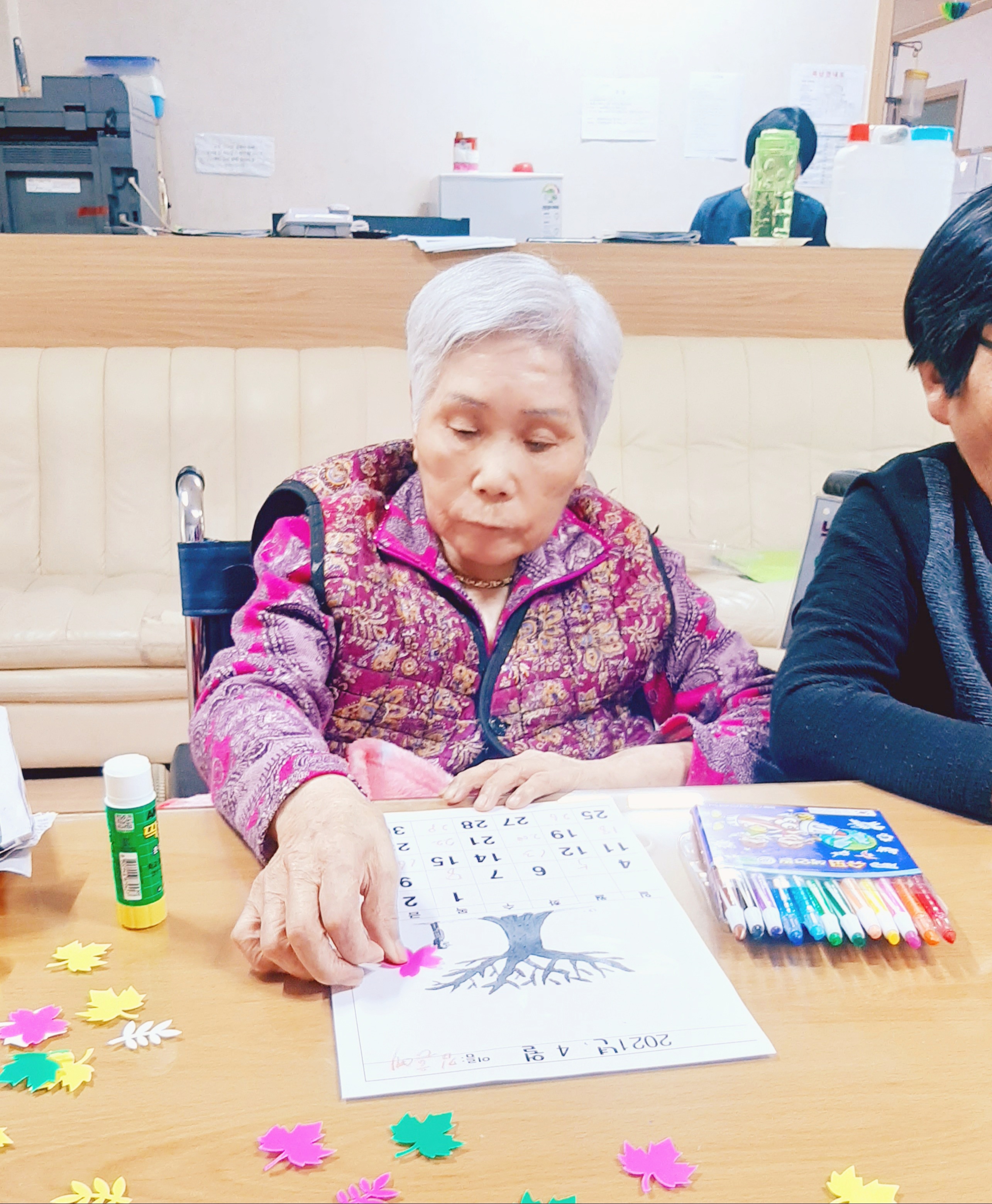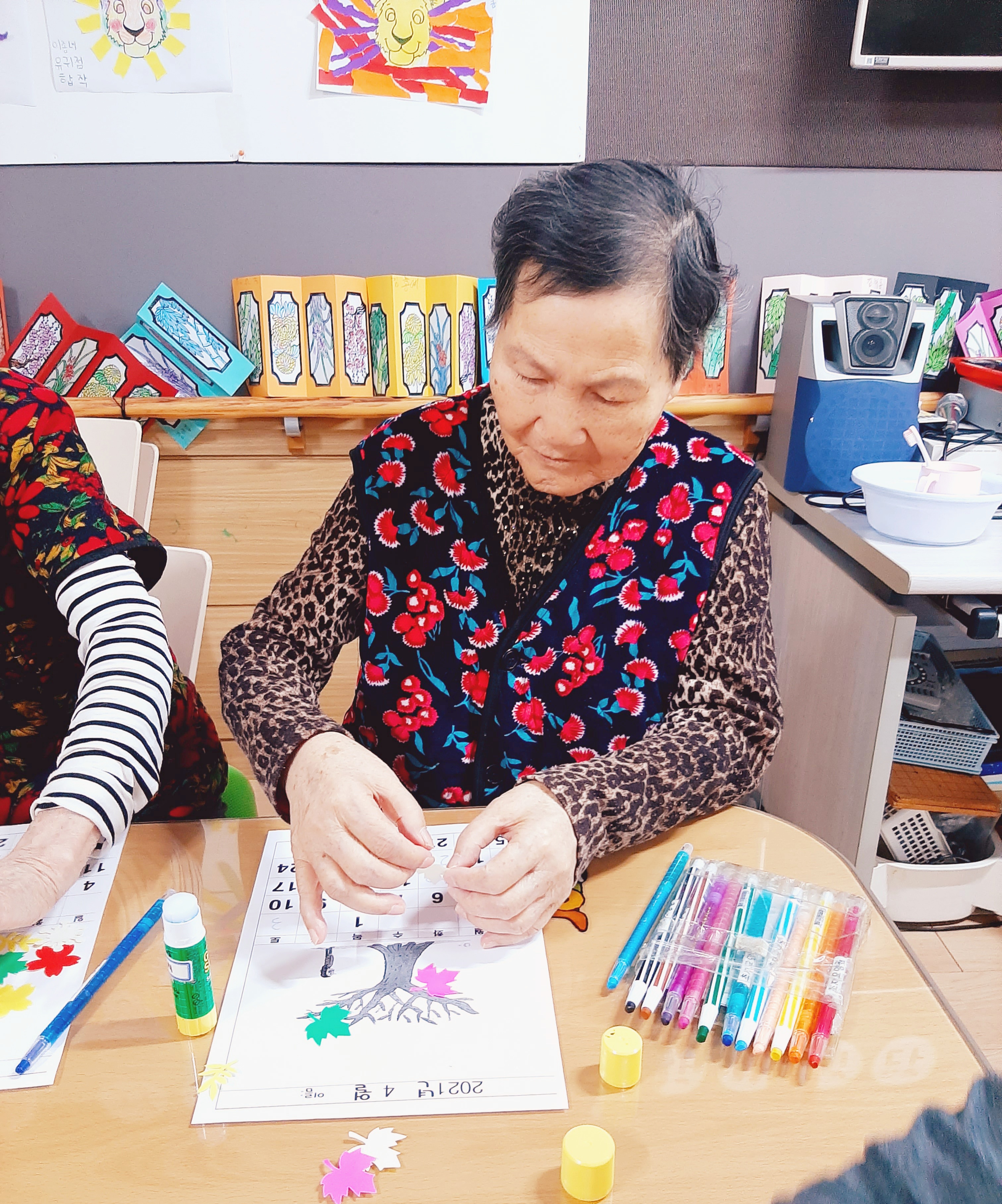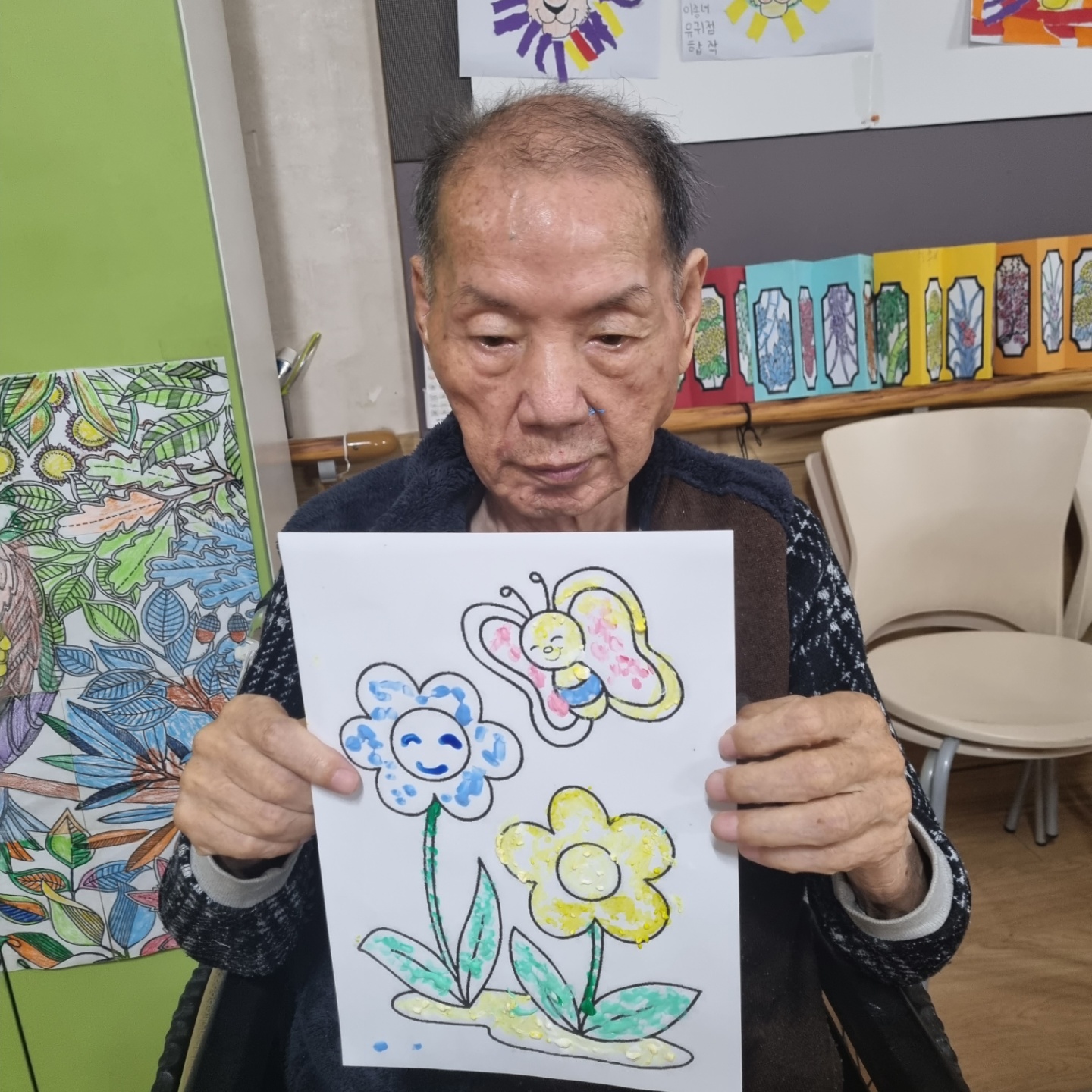 우리 어르신들은 예쁜 꽃과 나비를 예쁘게 꾸미셨답니다