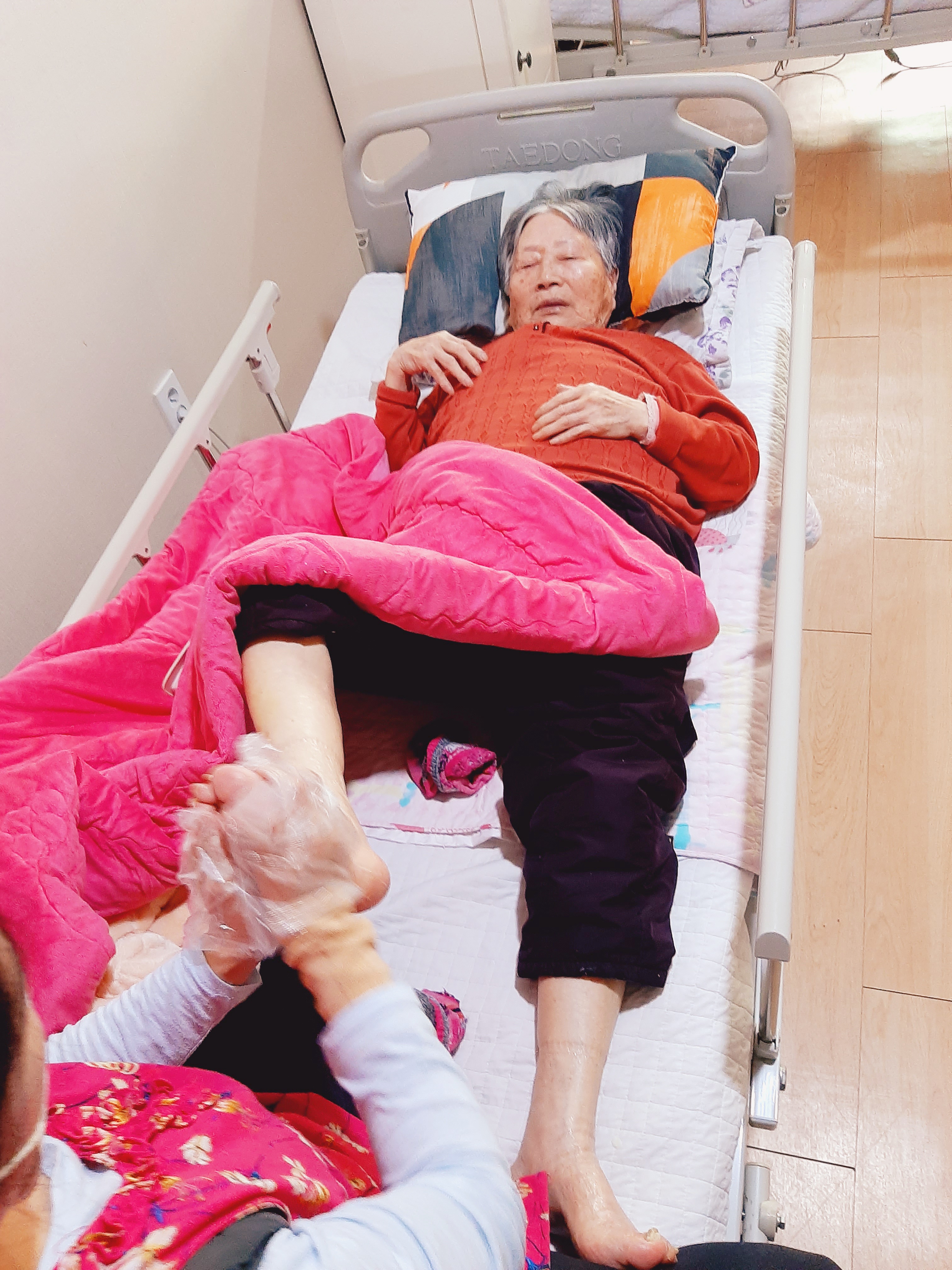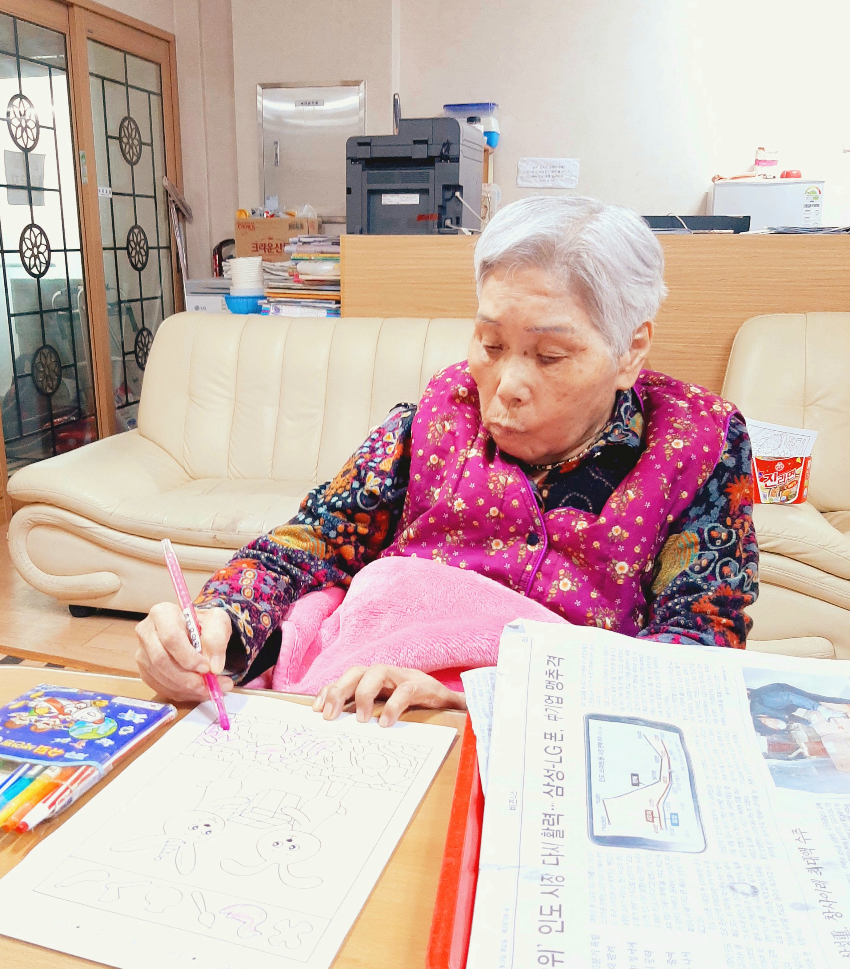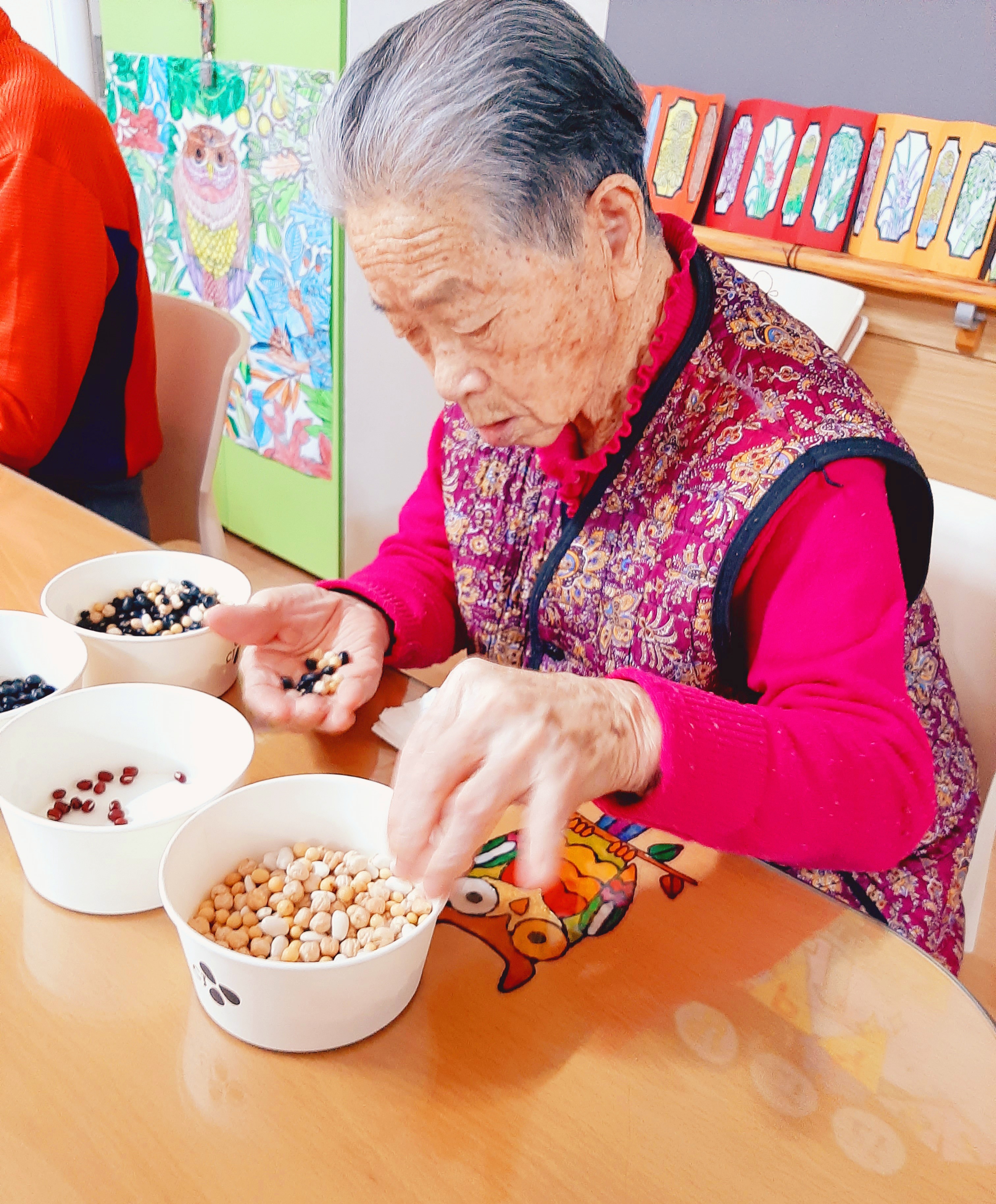 콩을 고르시느라 손가락을 섬세하게 움직이시면서 집중하시는 어르신들이십니다.