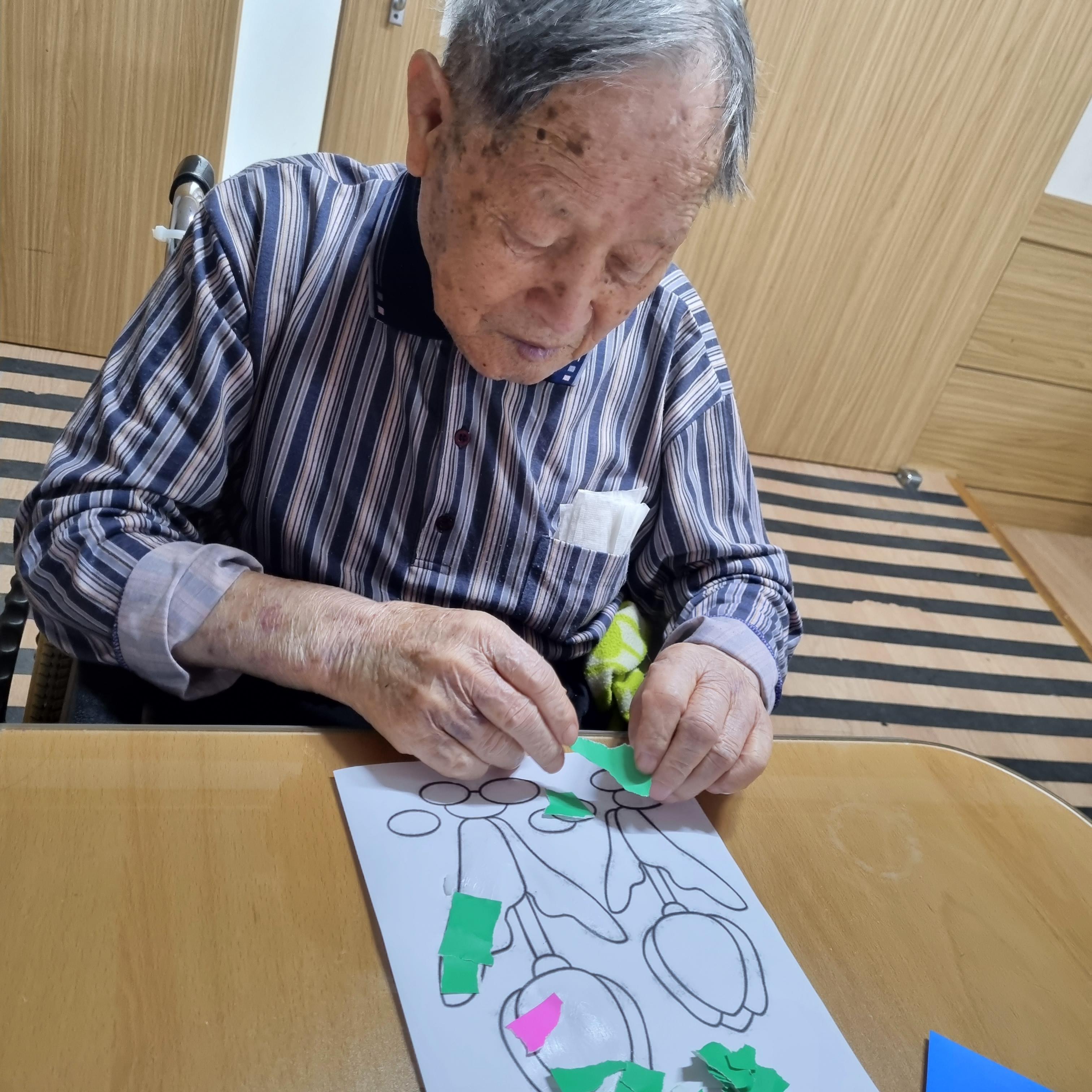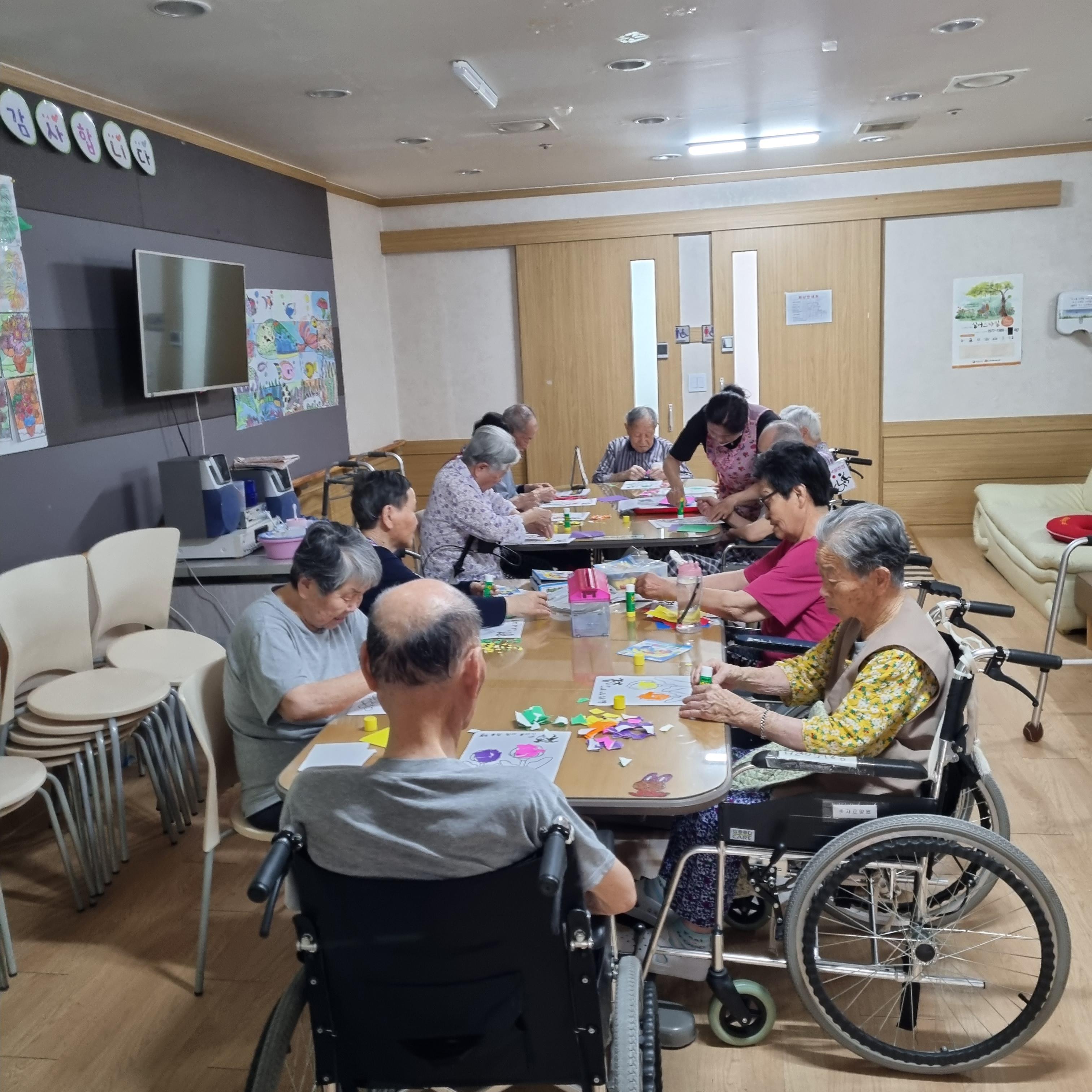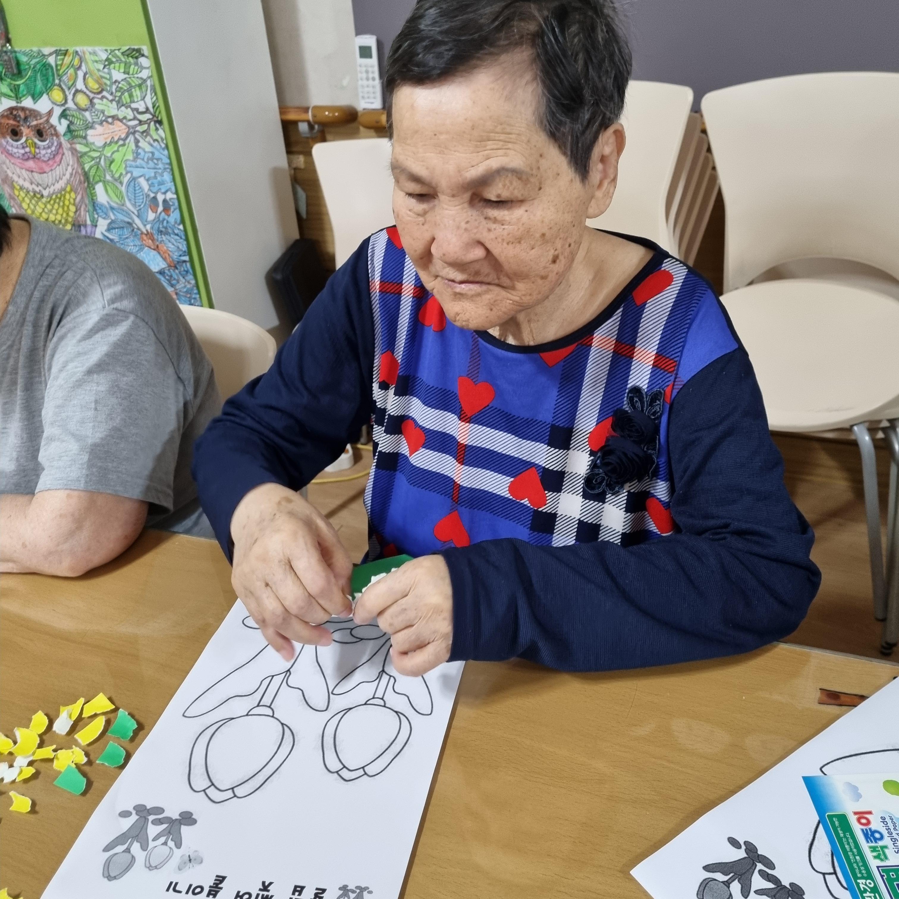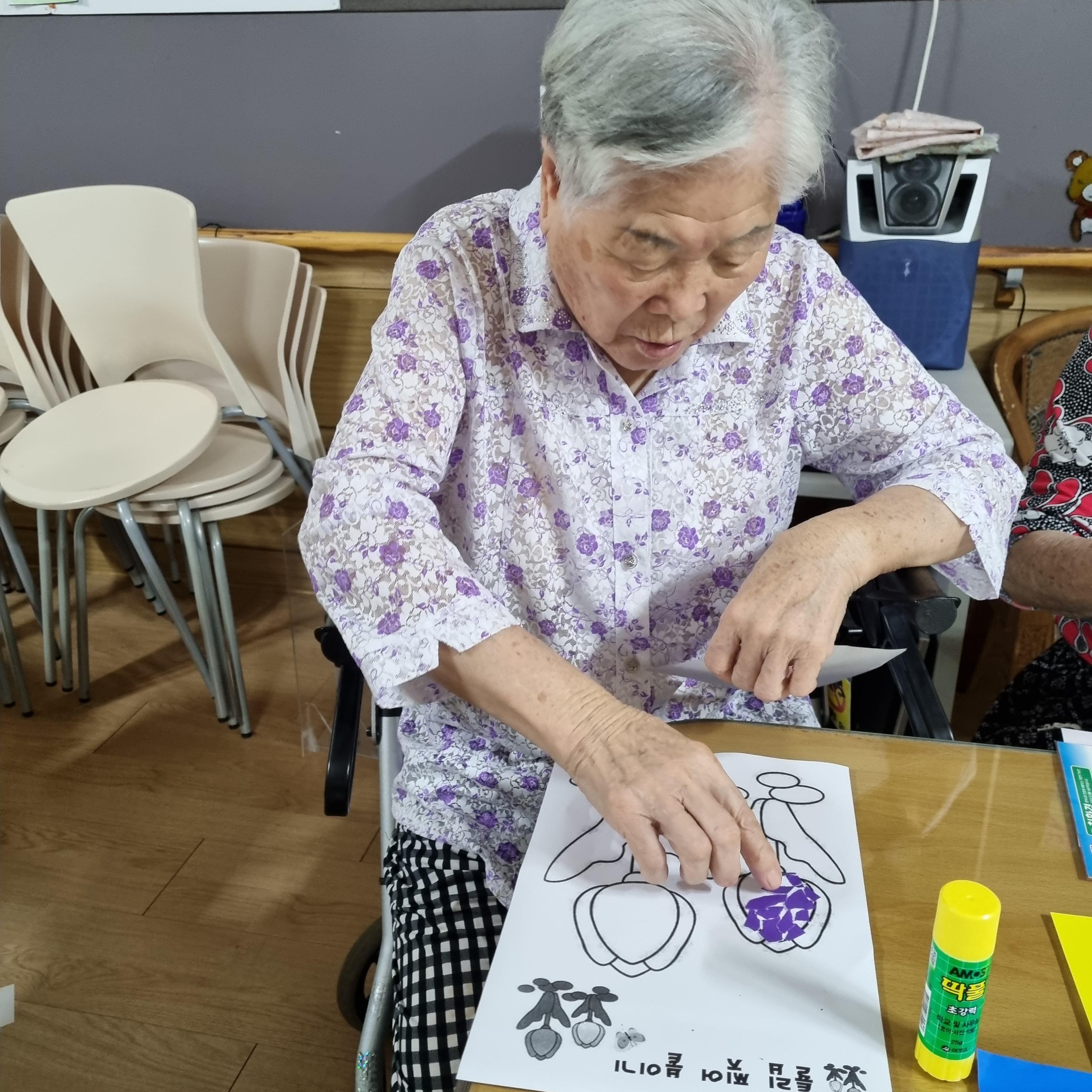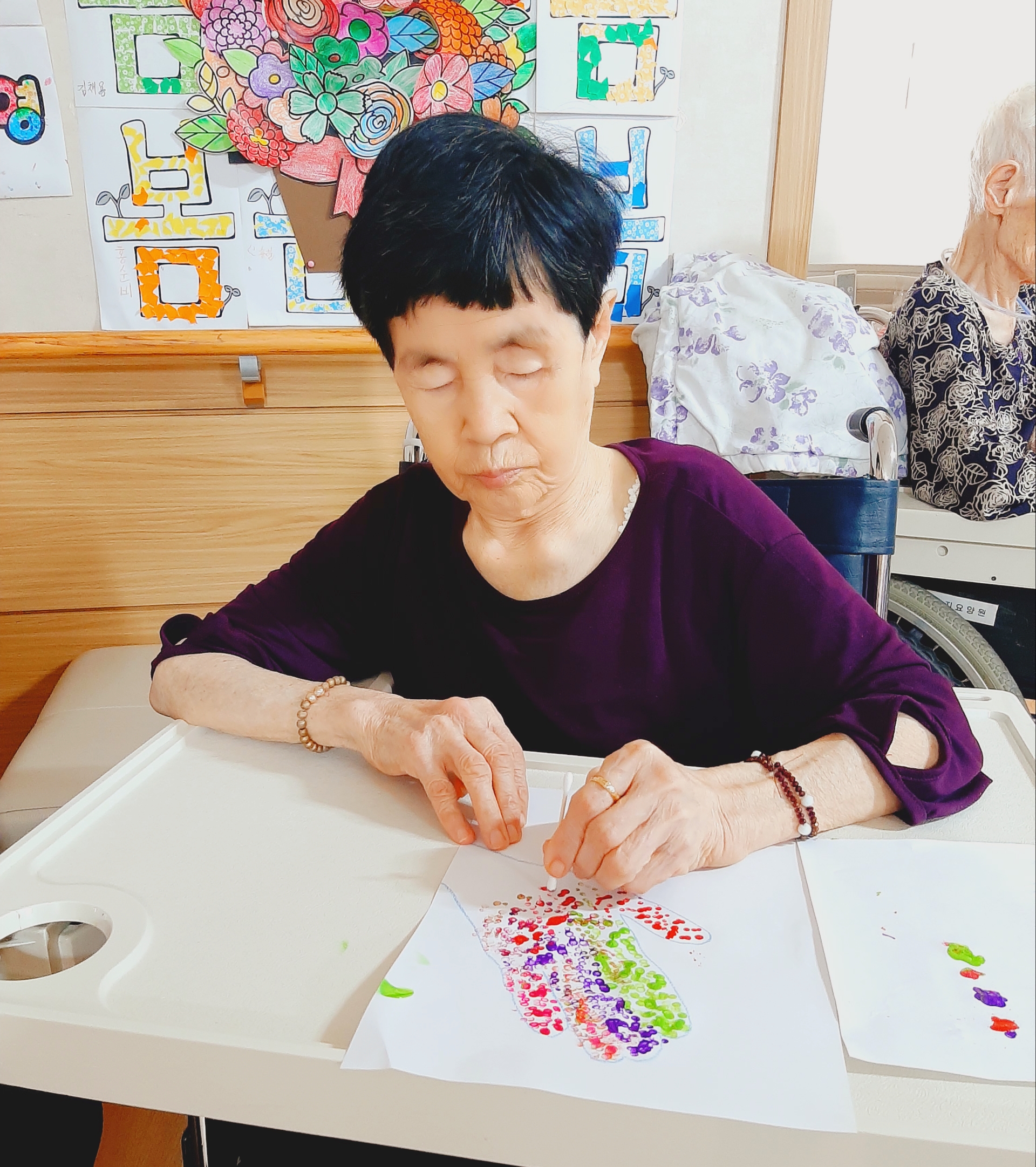 오늘 오후에는 어르신 손바닥을 대고 그려 물감으로 찍기를 하였습니다