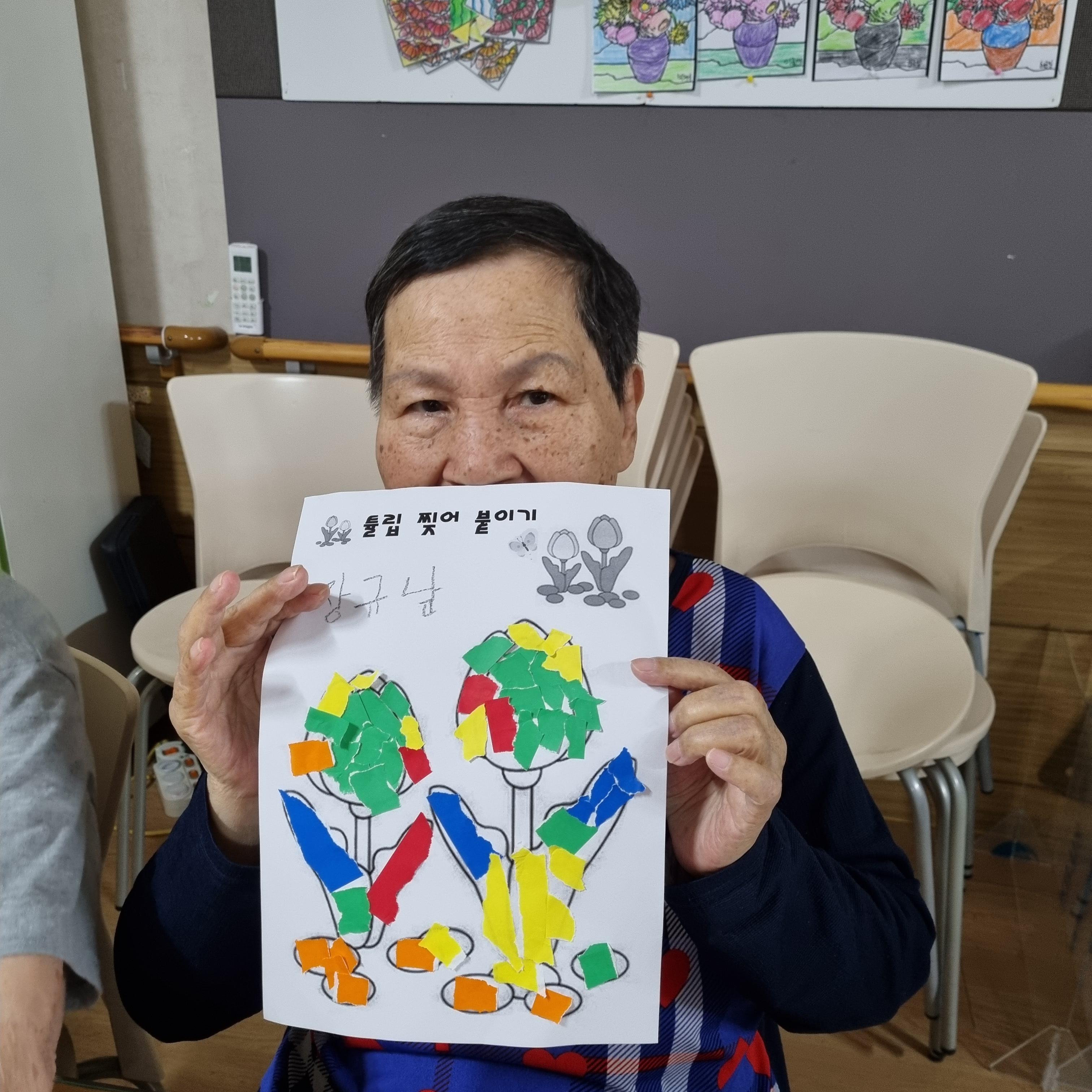 오늘 오후에는 예쁜 튤립그림에 모자이크 붙히기를 하였습니다