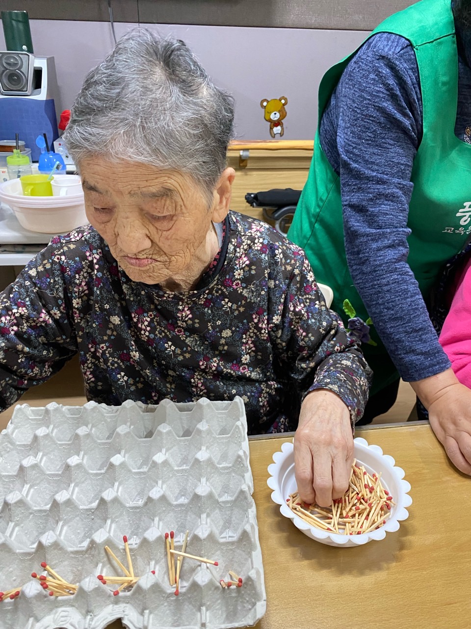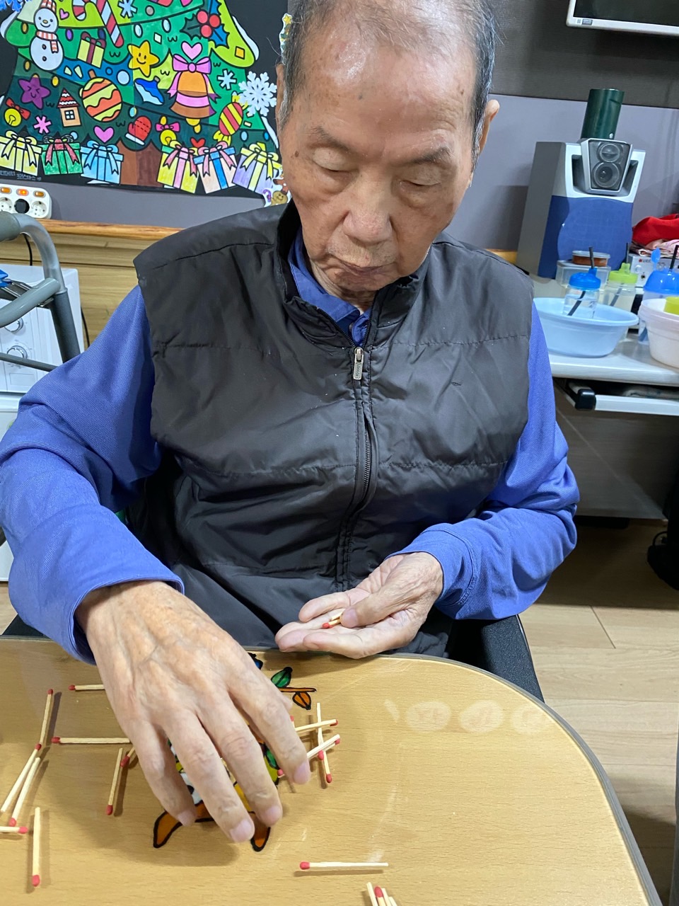 성냥으로 다양한 구성물을 완성해보도록 하여 대상자의 성취감을 충족시키고 손의 근육조직을 발달시킨다.