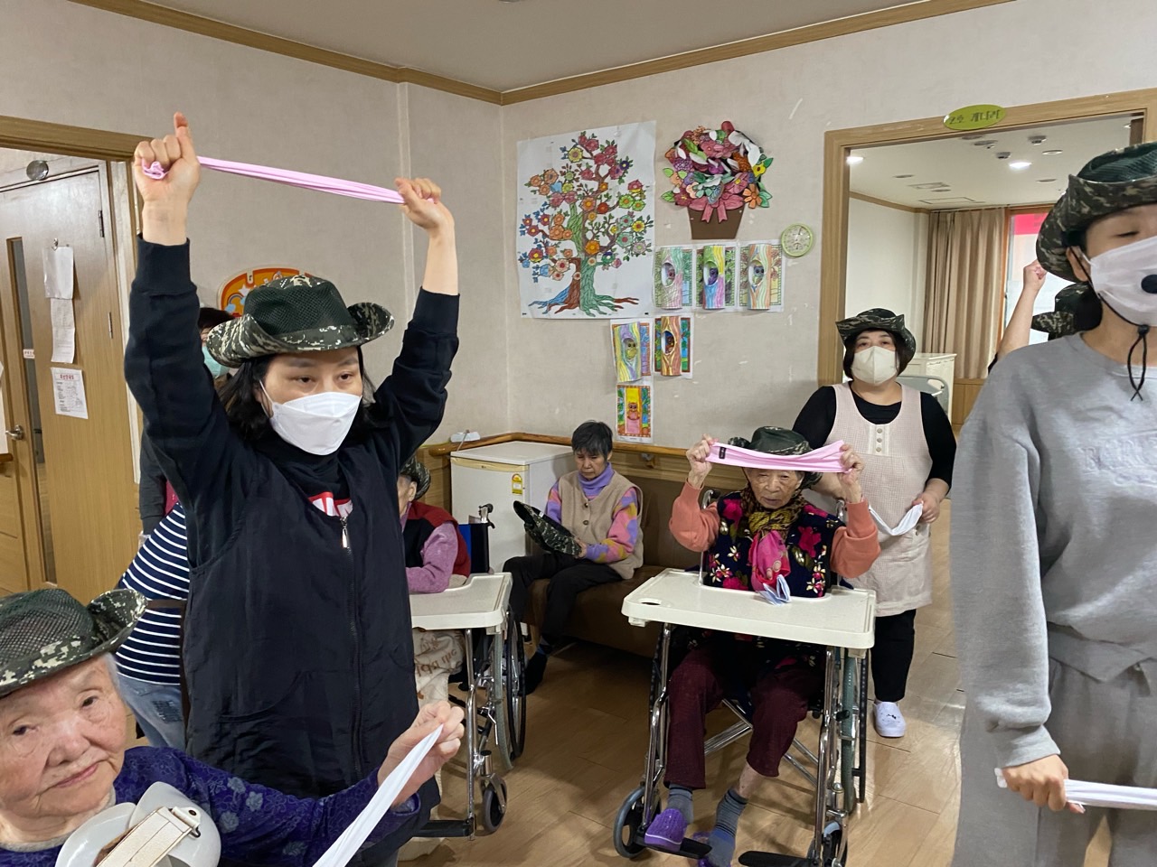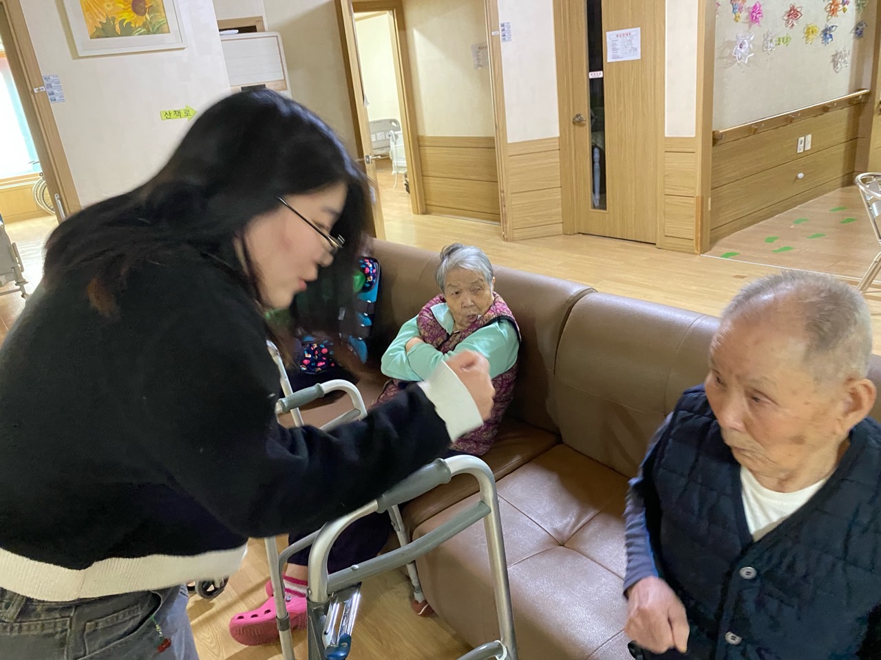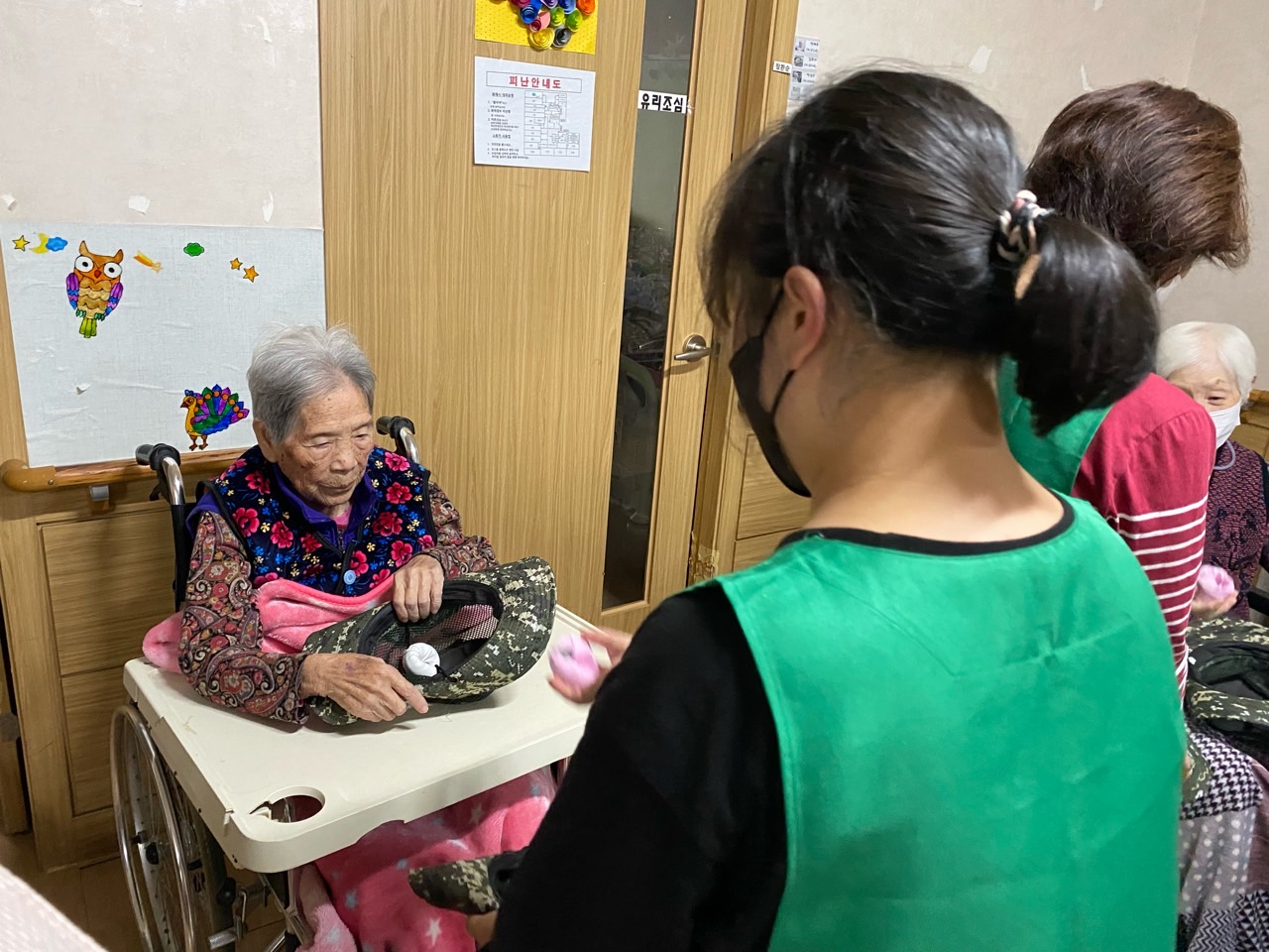 1. 어르신들의 얼굴을 물수건으로 닦아드린다.