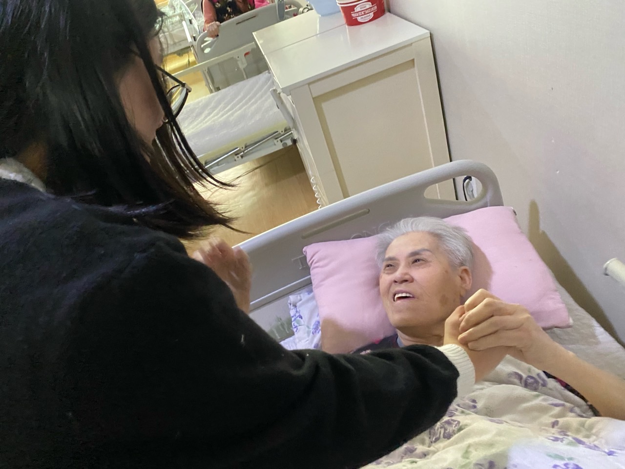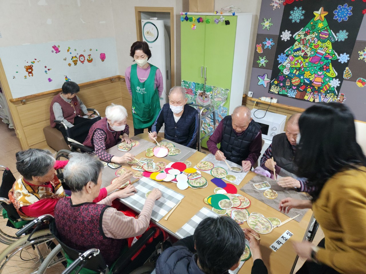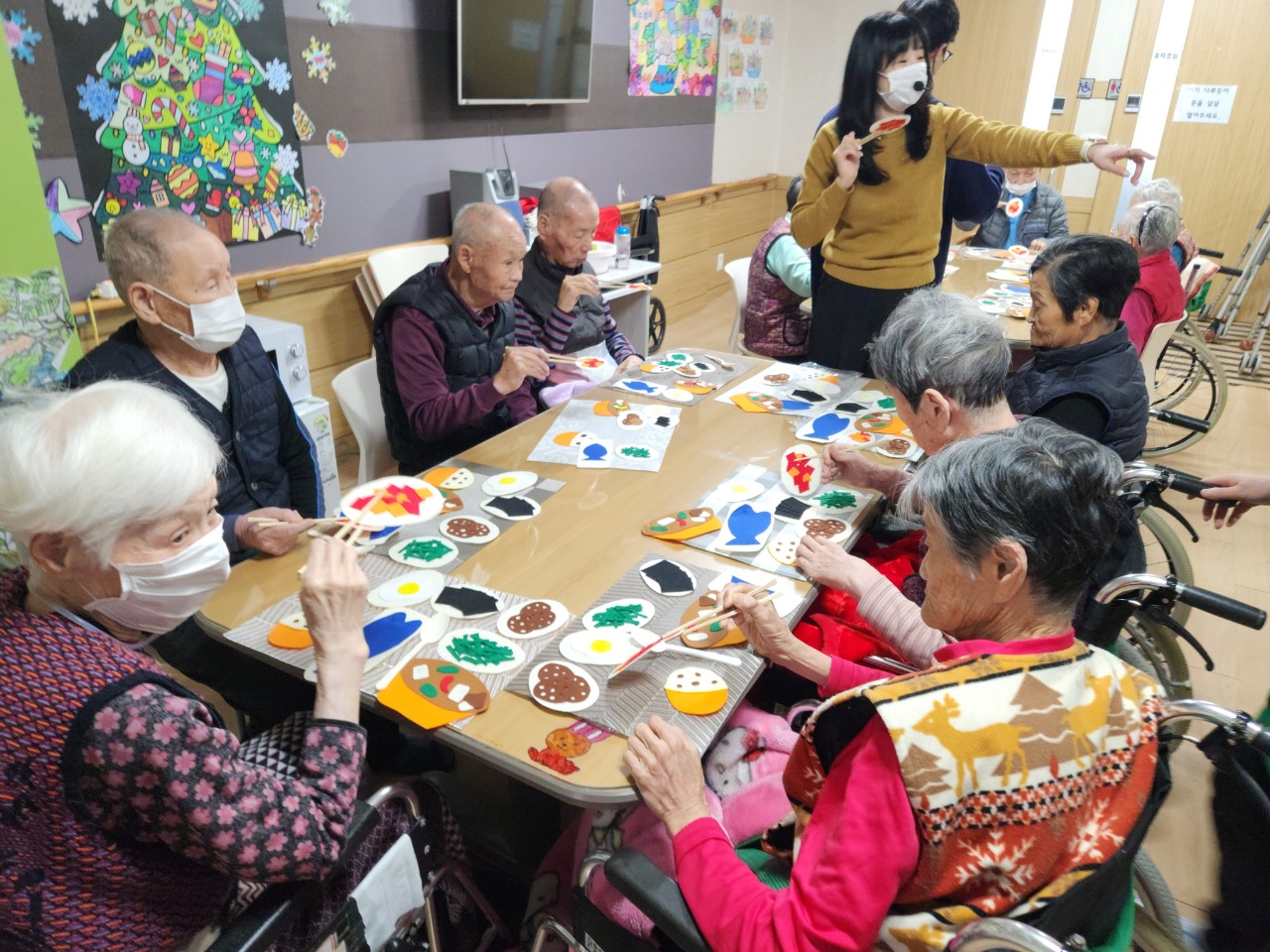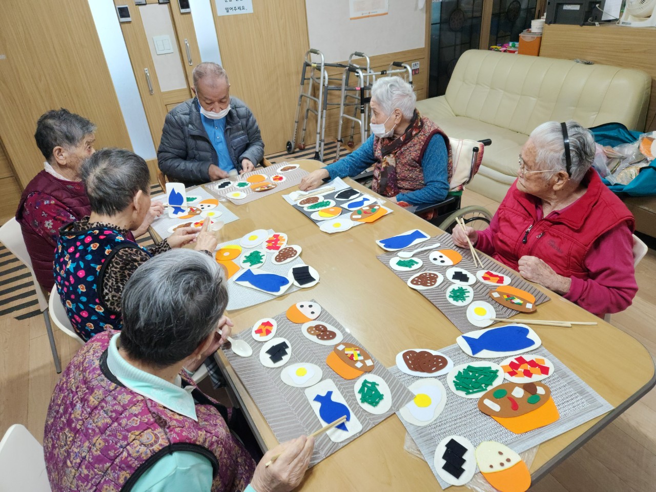 1. 어르신들의 얼굴을 물수건으로 닦아드린다.