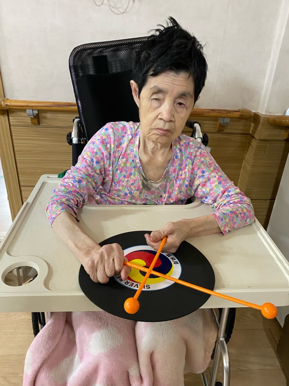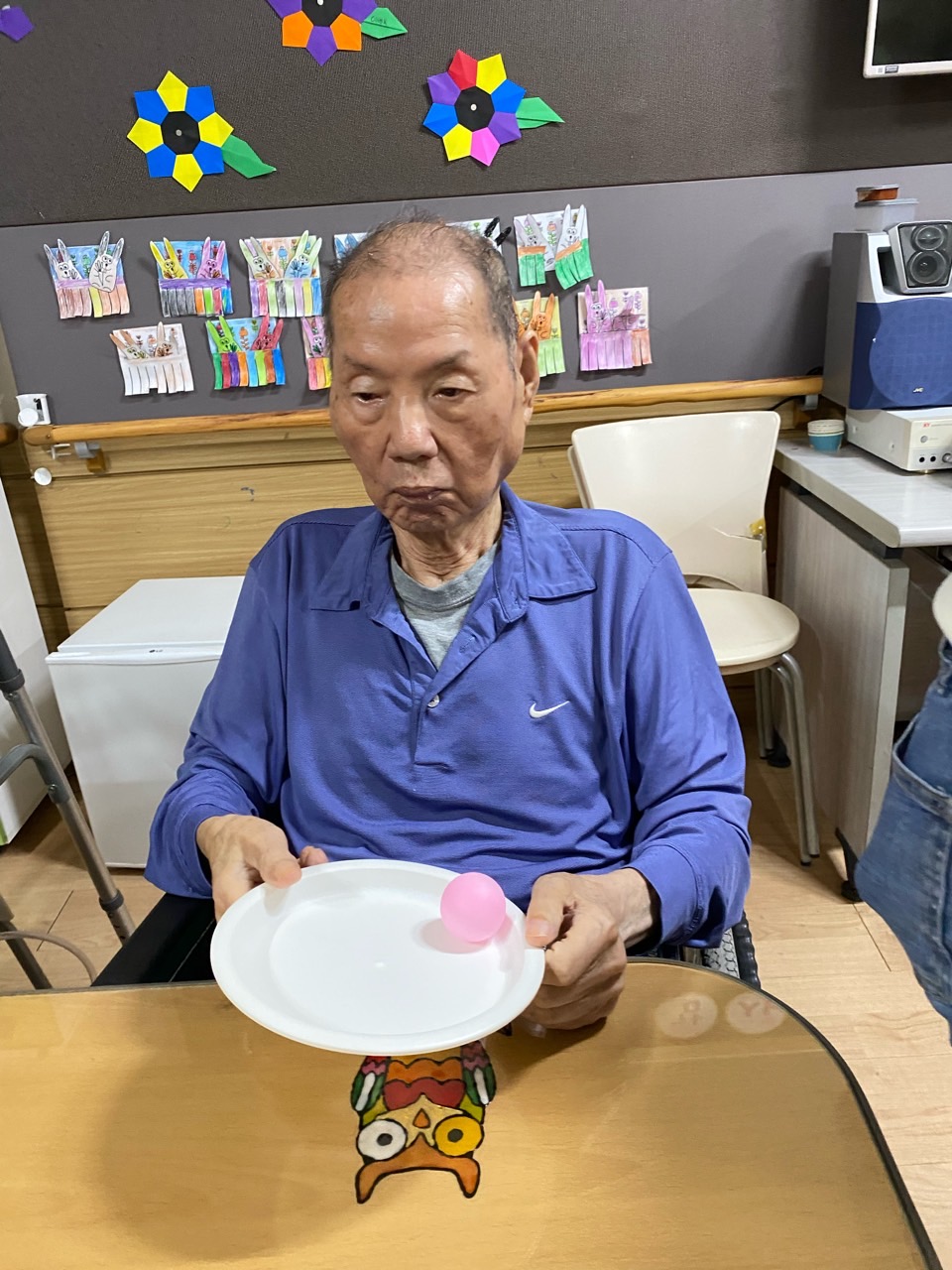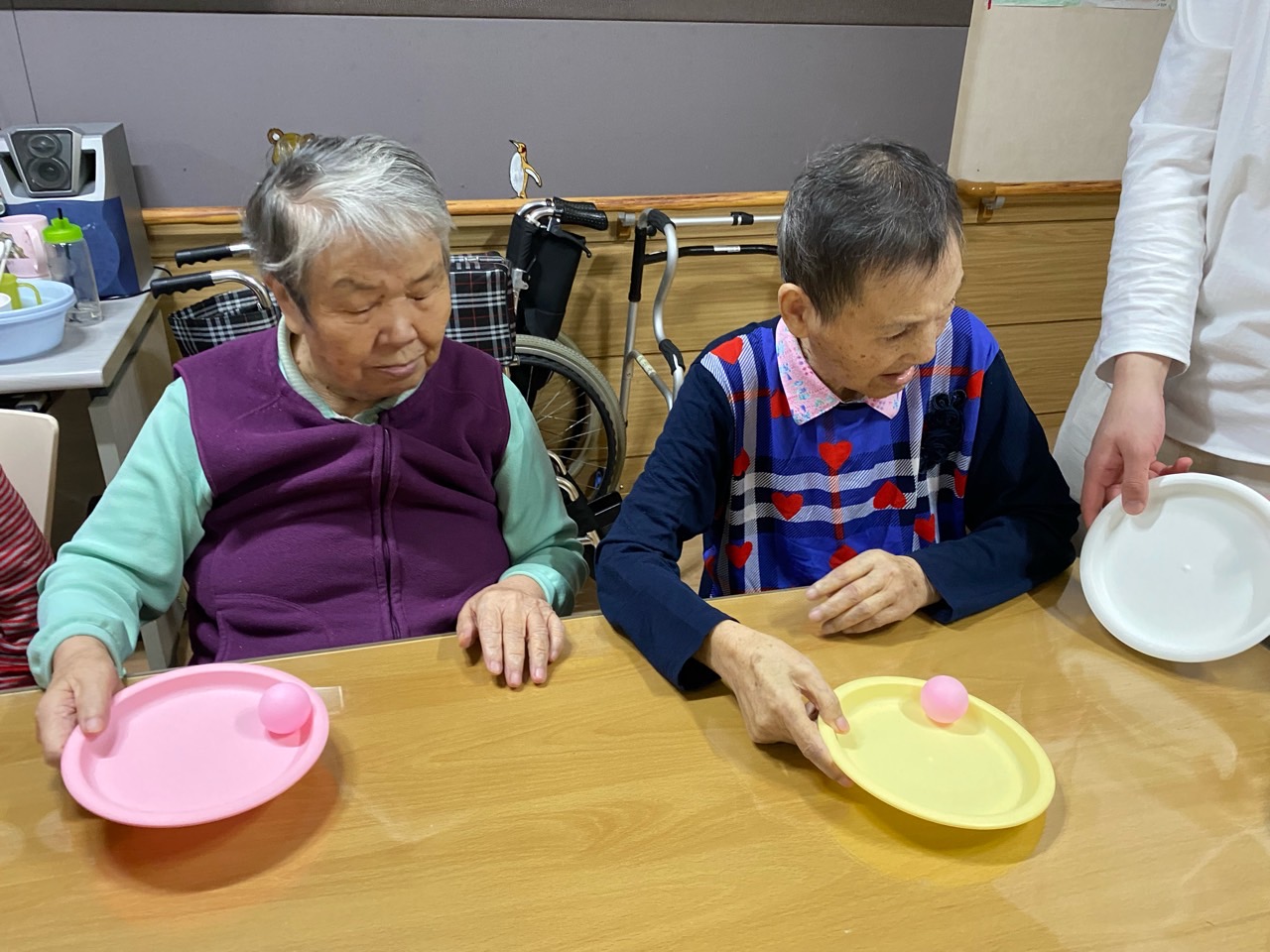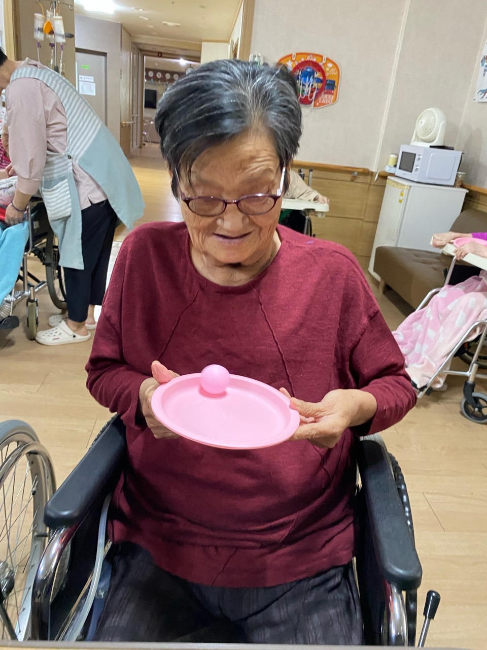 어르신들이 이제 탁구공 놀이를 제법 잘 하십니다.