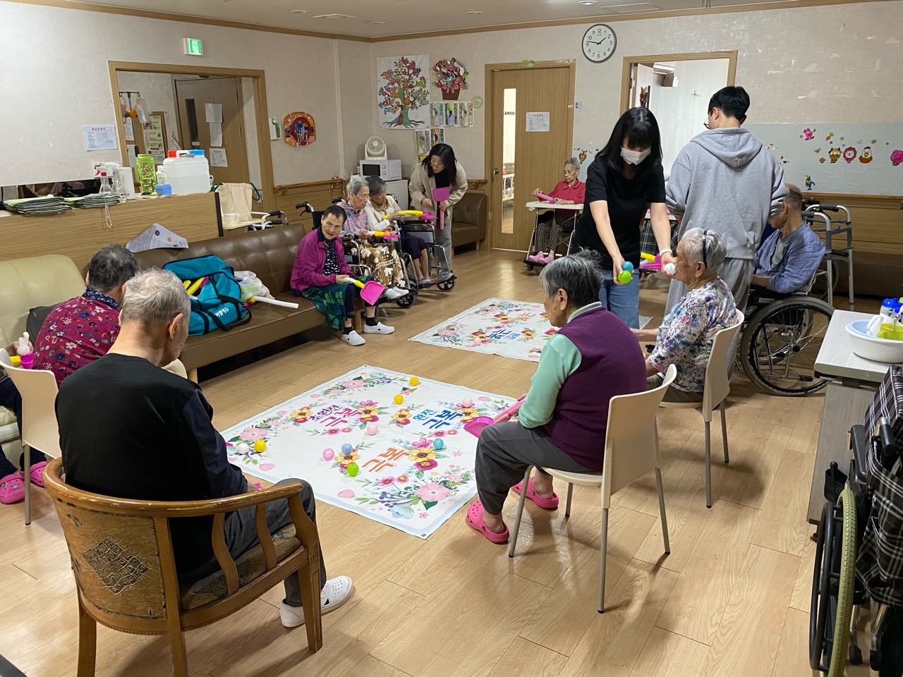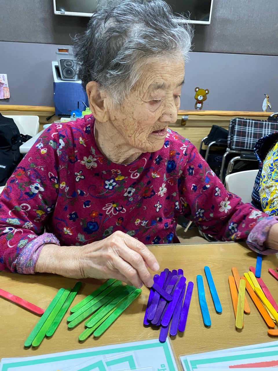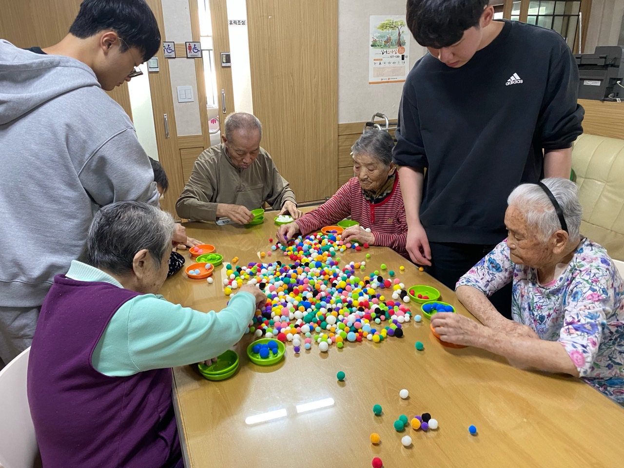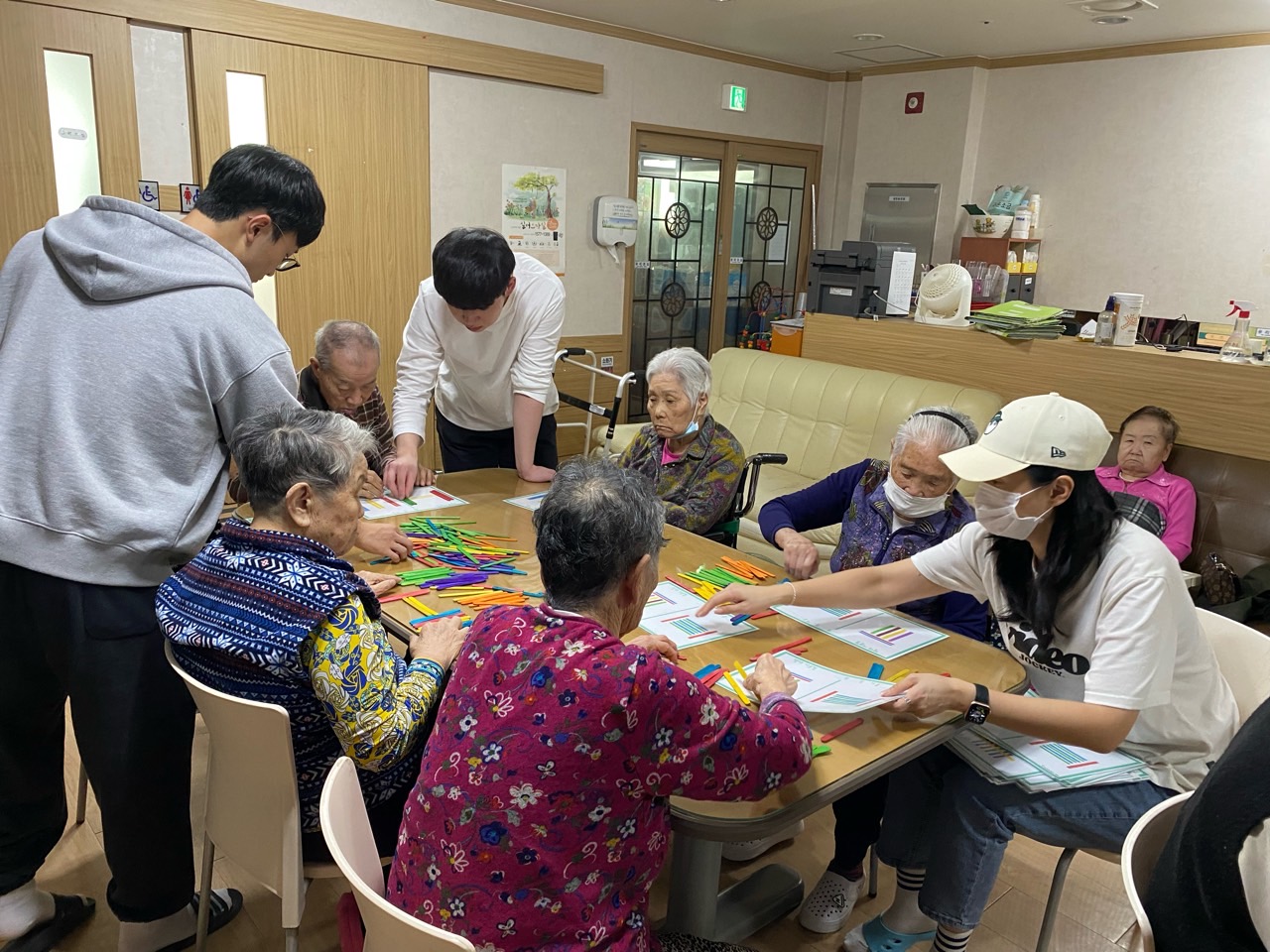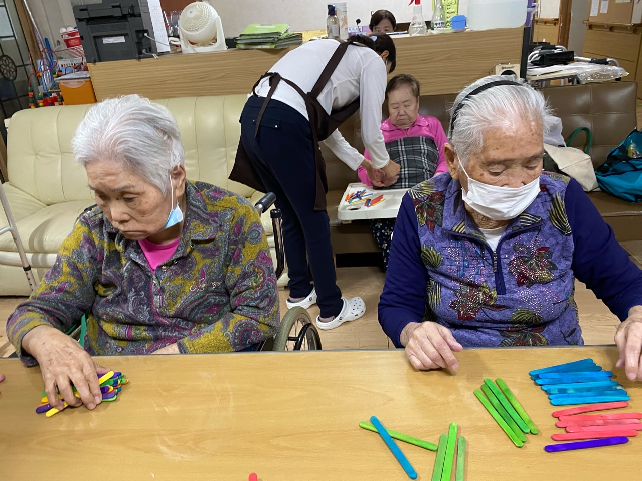 1. 어르신들을 프로그램실로 모신다.