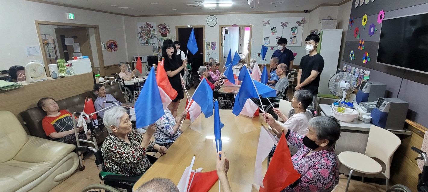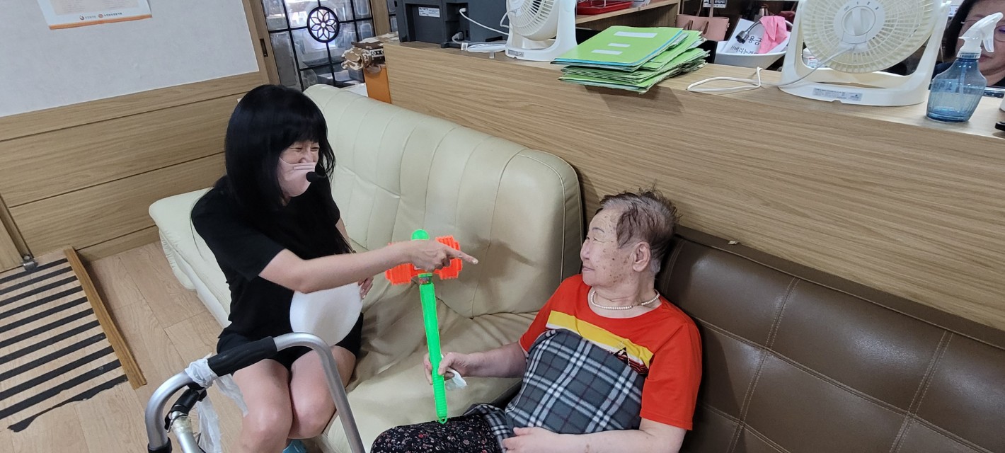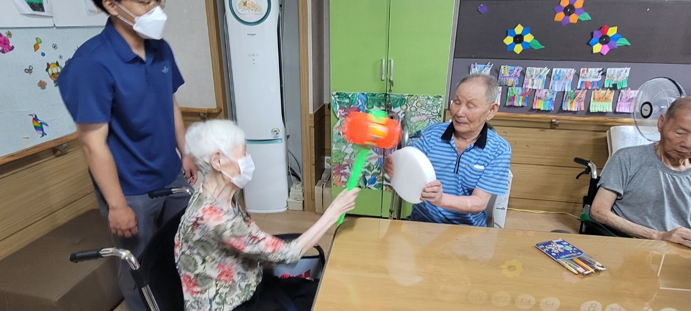 어르신들께서 깃발 3색을 아주 잘 인지하셨고 올리기 내리기를 너무 잘하셨습니다. 가위바위보 놀이도 뿅망치를 두드리시며 즐거워 하셨습니다.^^
