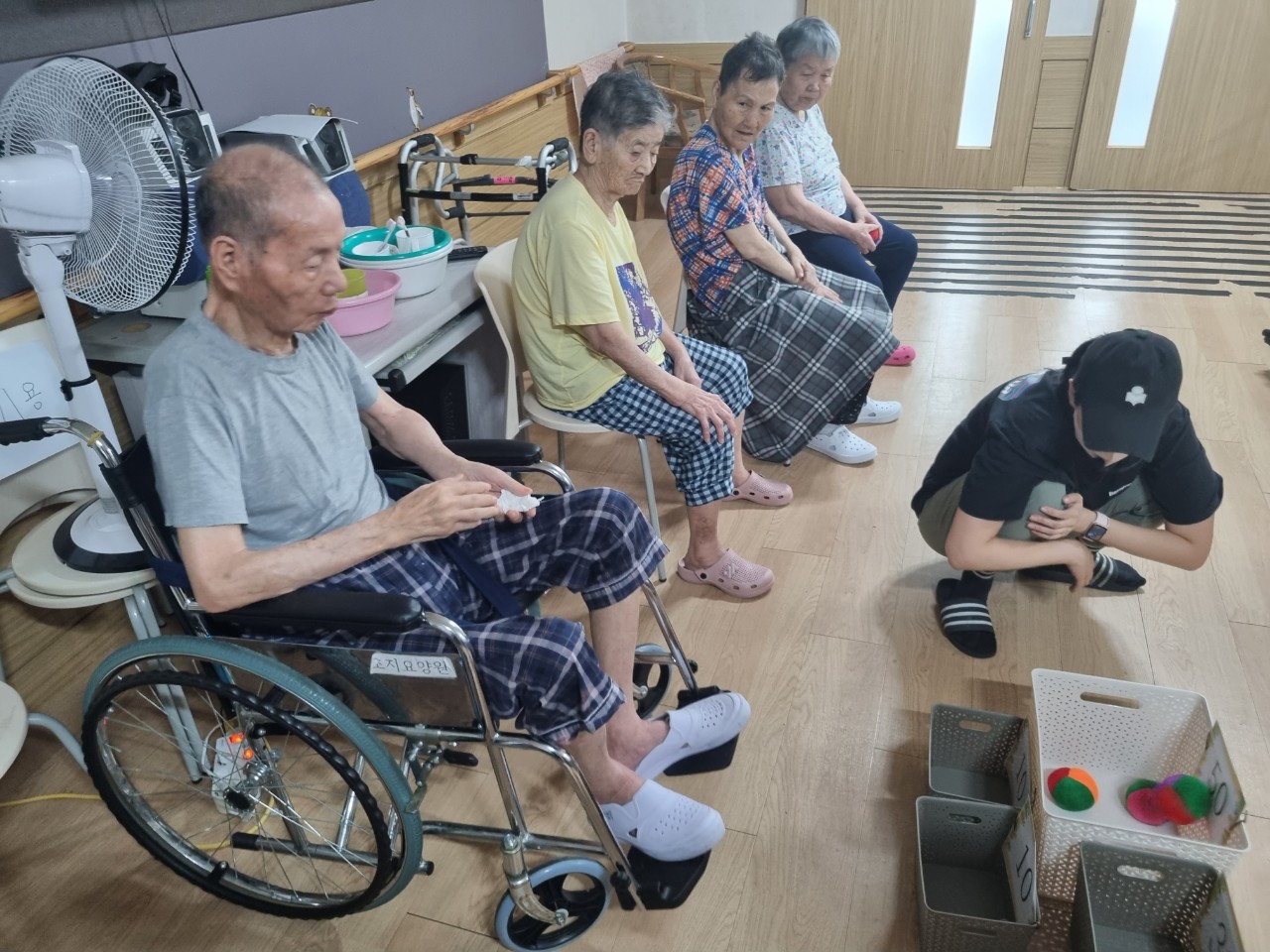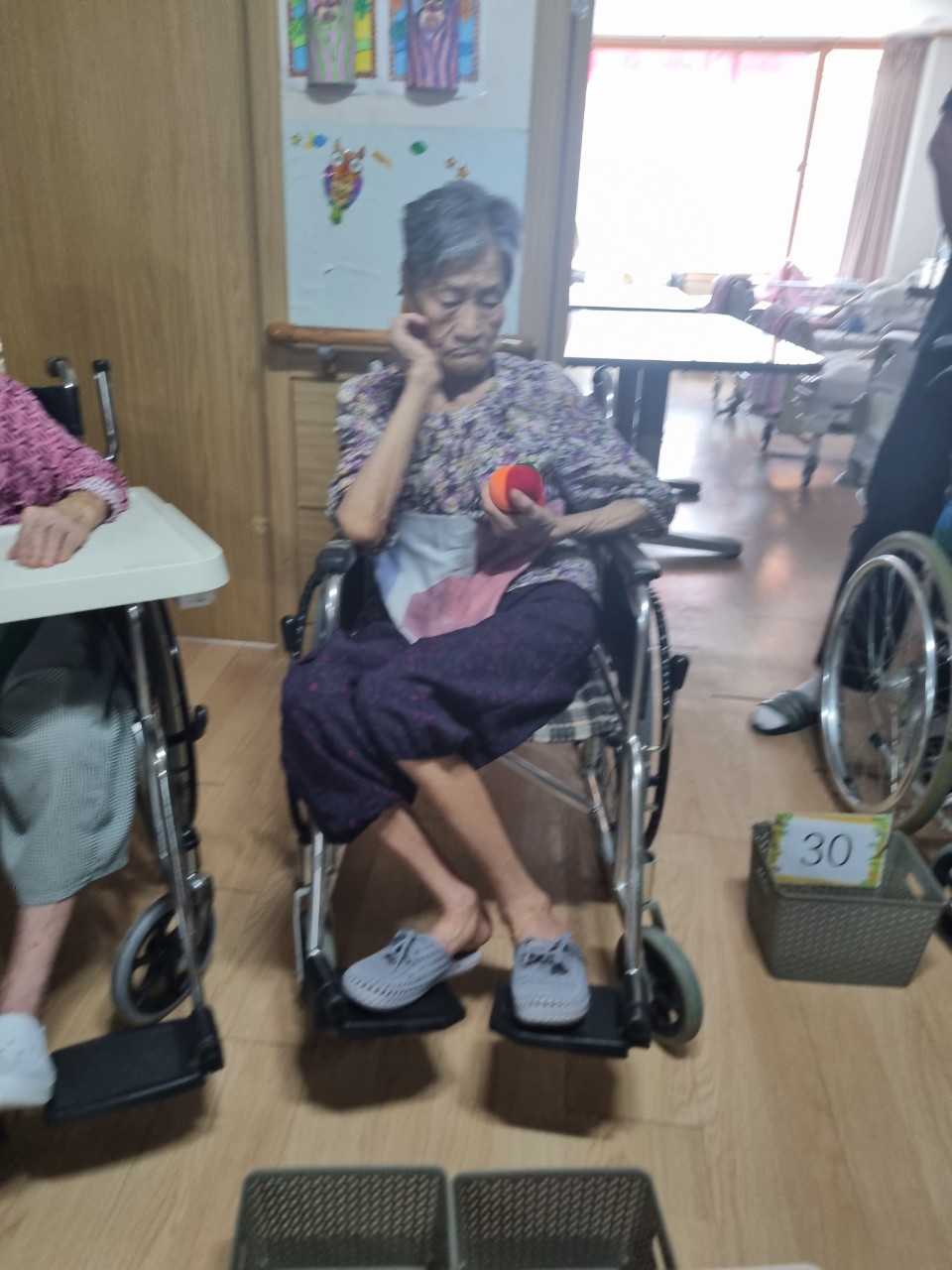 젓가락으로 컵을 서로에게 옮기기를 너무 잘 하셨고, 컵을 쌓고 방울을 넣어 흔들기까지 잘 하셨습니다.