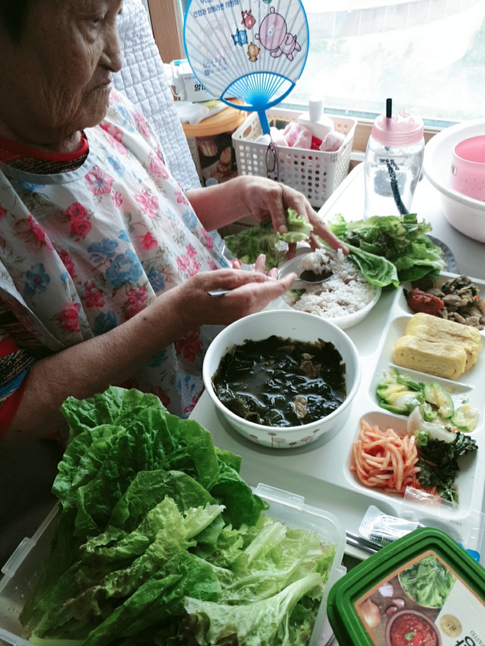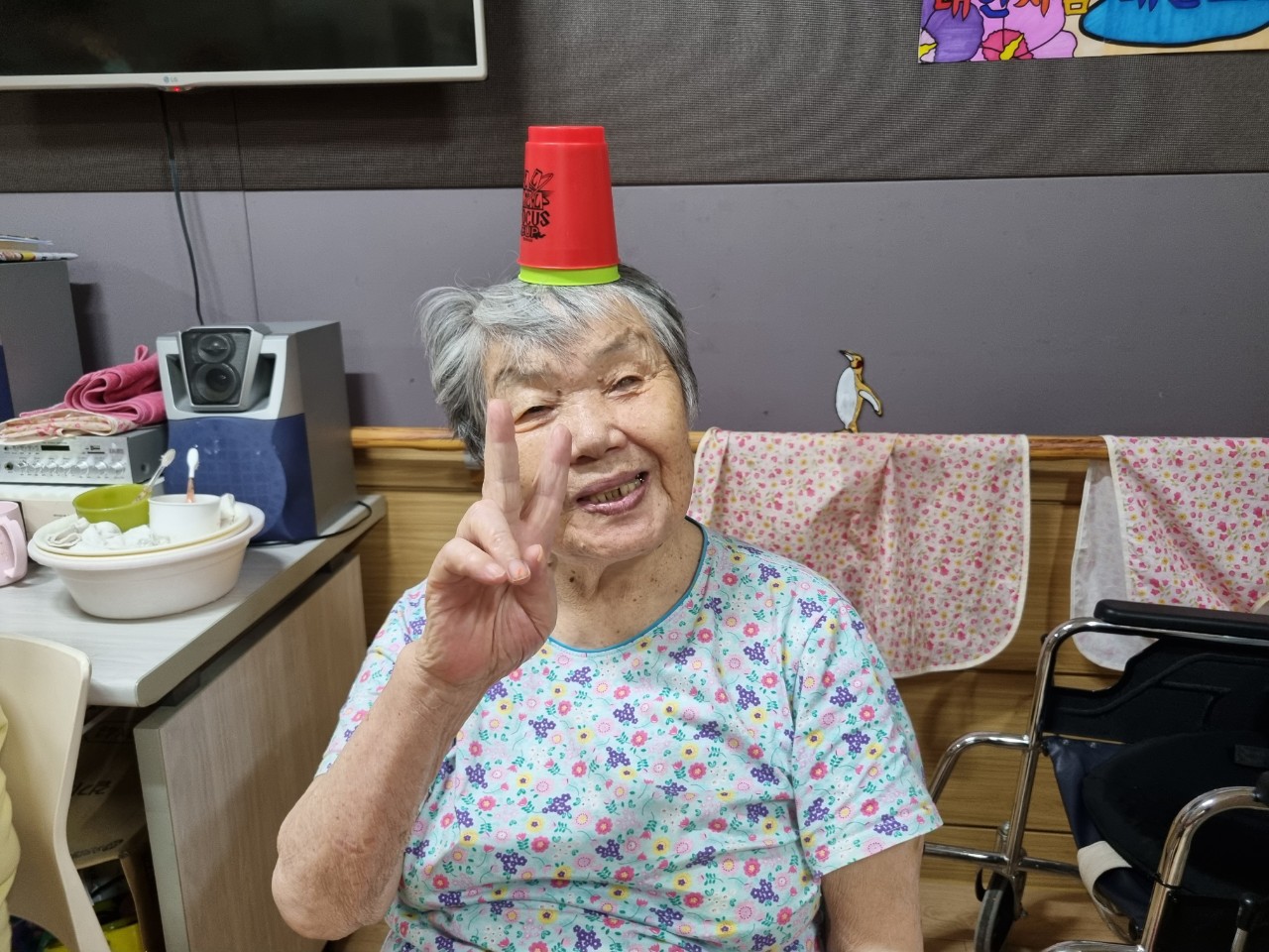 1. 어르신들의 얼굴을 물수건으로 닦아드린다.