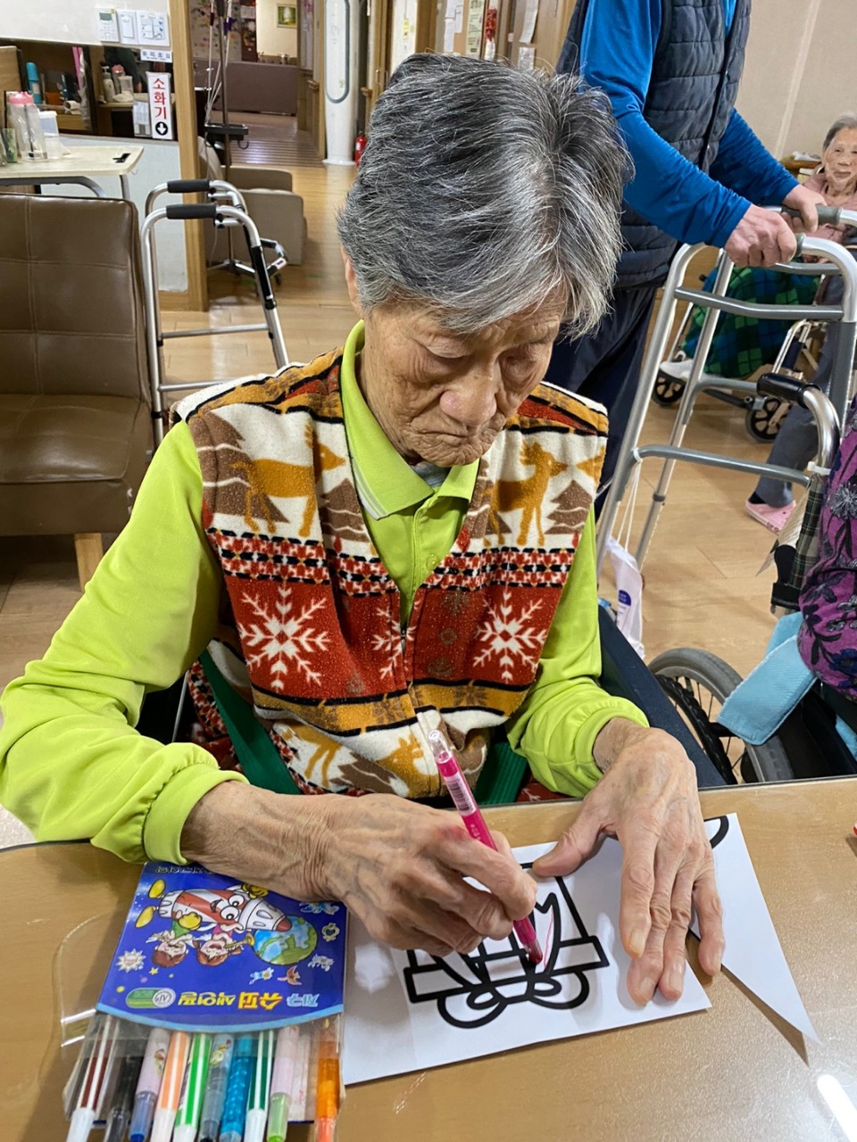 1. 어르신들의 얼굴을 물수건으로 닦아드린다.