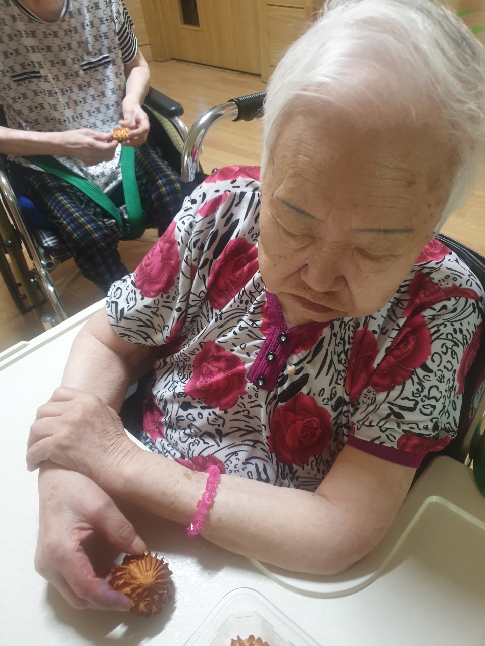 - 2024.08.20 0818( 일) 초지어르신들 야간 간식은 탁경운어르신께서 초코파이를 쏘셨습니다 잘먹겠습니다 안녕히 주무세요~♡