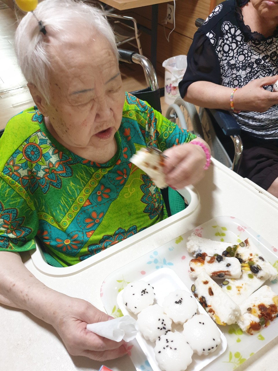 - 2024.08.06 0803(토) 초지어르신들 야간간식은 맛있는 콩떡과 술떡입니다 맛있게드세요^^♡