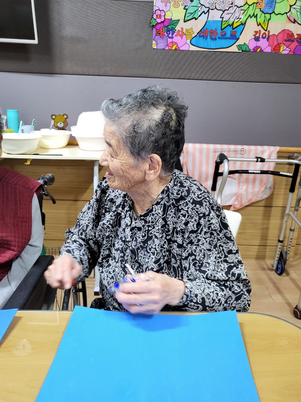 2. 작업과정에 대해 순서대로 기억해보며 오늘 작업에 과정에 대해 어르신이 어느 정도 기억하는지 확인한다.