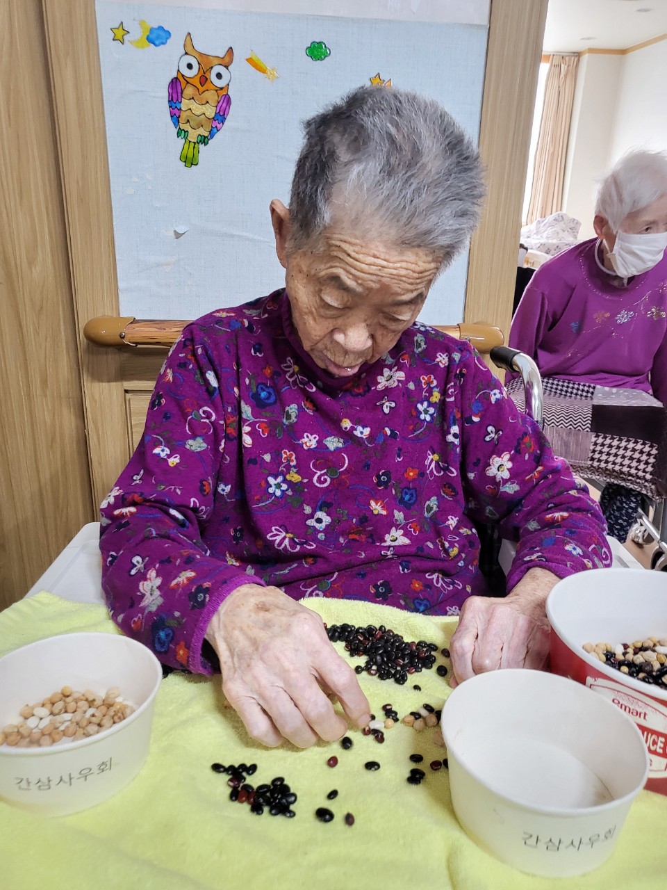 2. 각자 콩과 콩바구니를 나눠 드리고 콩을 고를수 있게 도와드린다