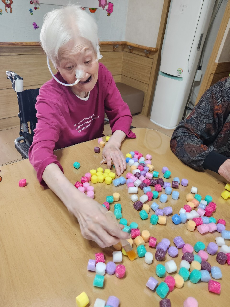 옛날에 사용했던 엽전으로 꿰고 쌓고 올리기 긁기 활동들을 수행한다.