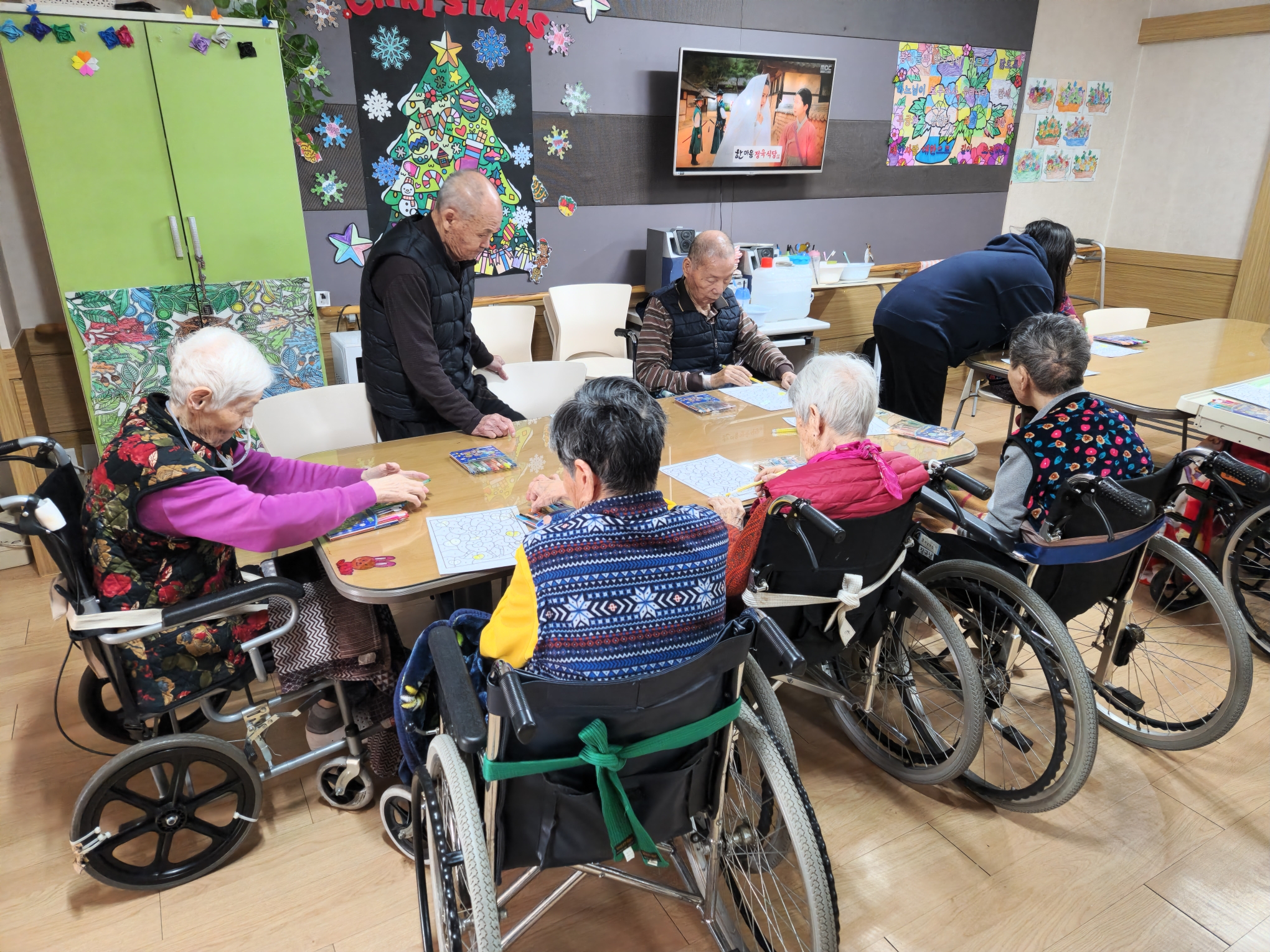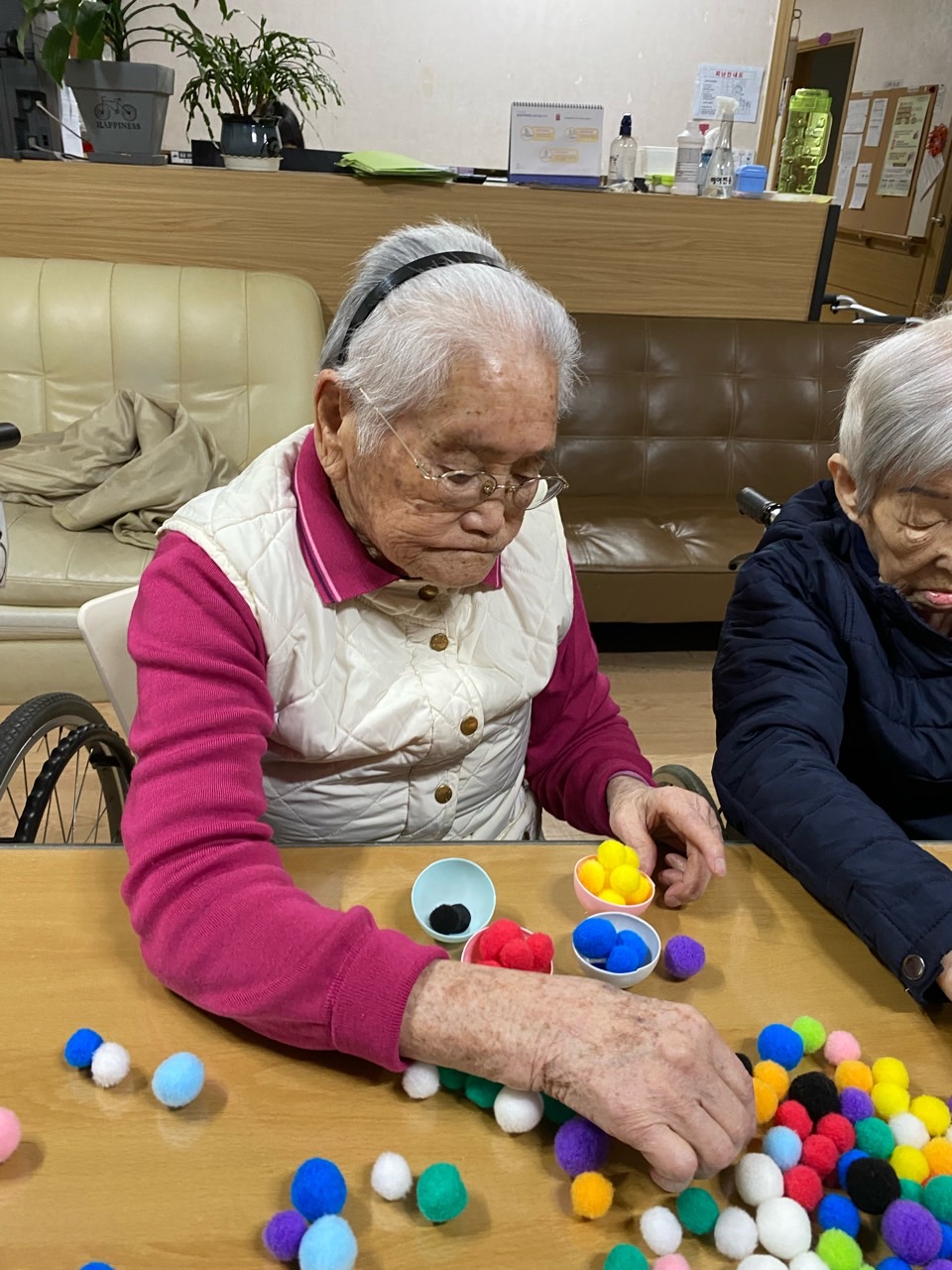 1. 어르신들을 프로그램실로 모신다.