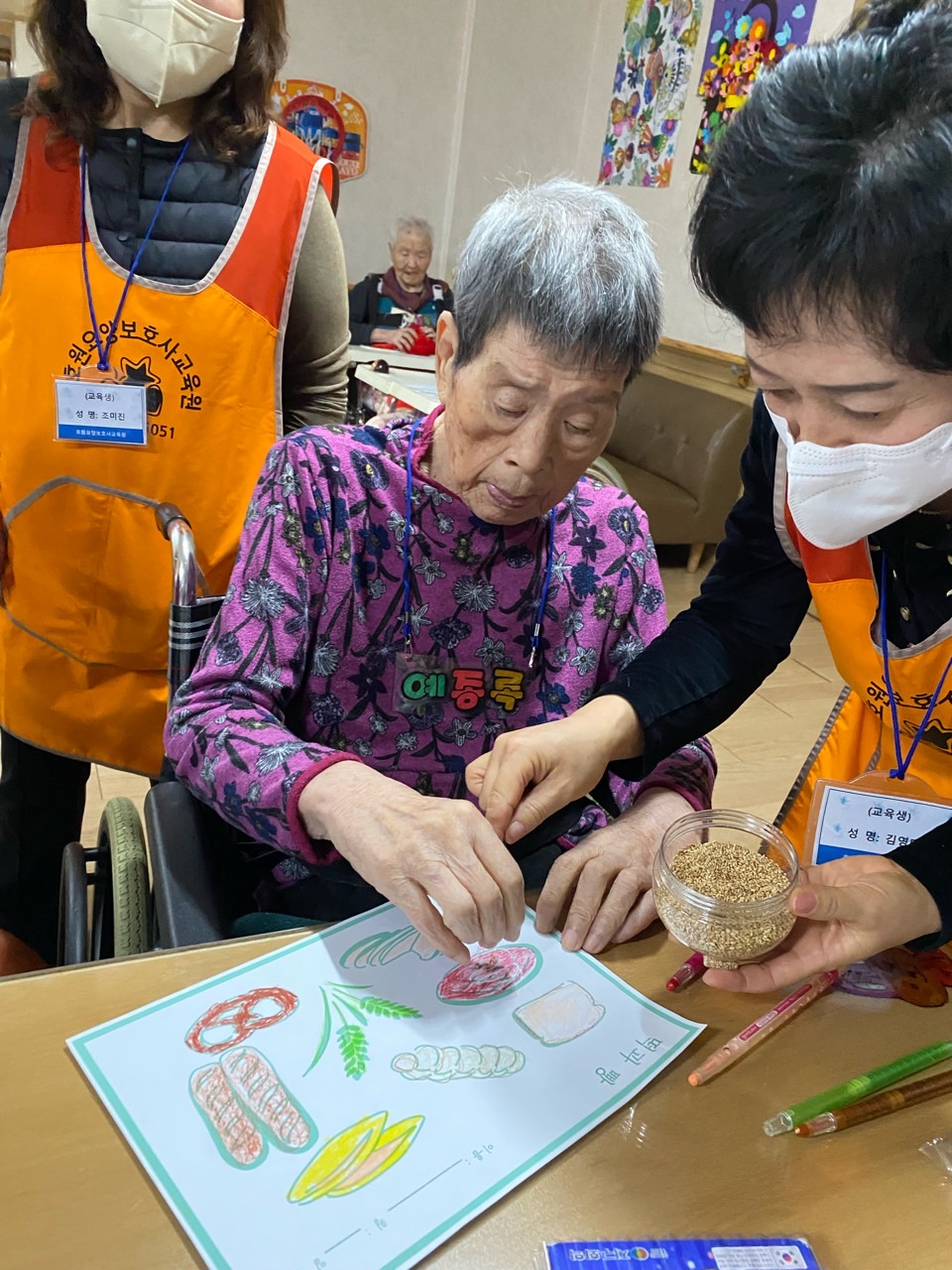 1. 어르신들을 프로그램실로 모신다.