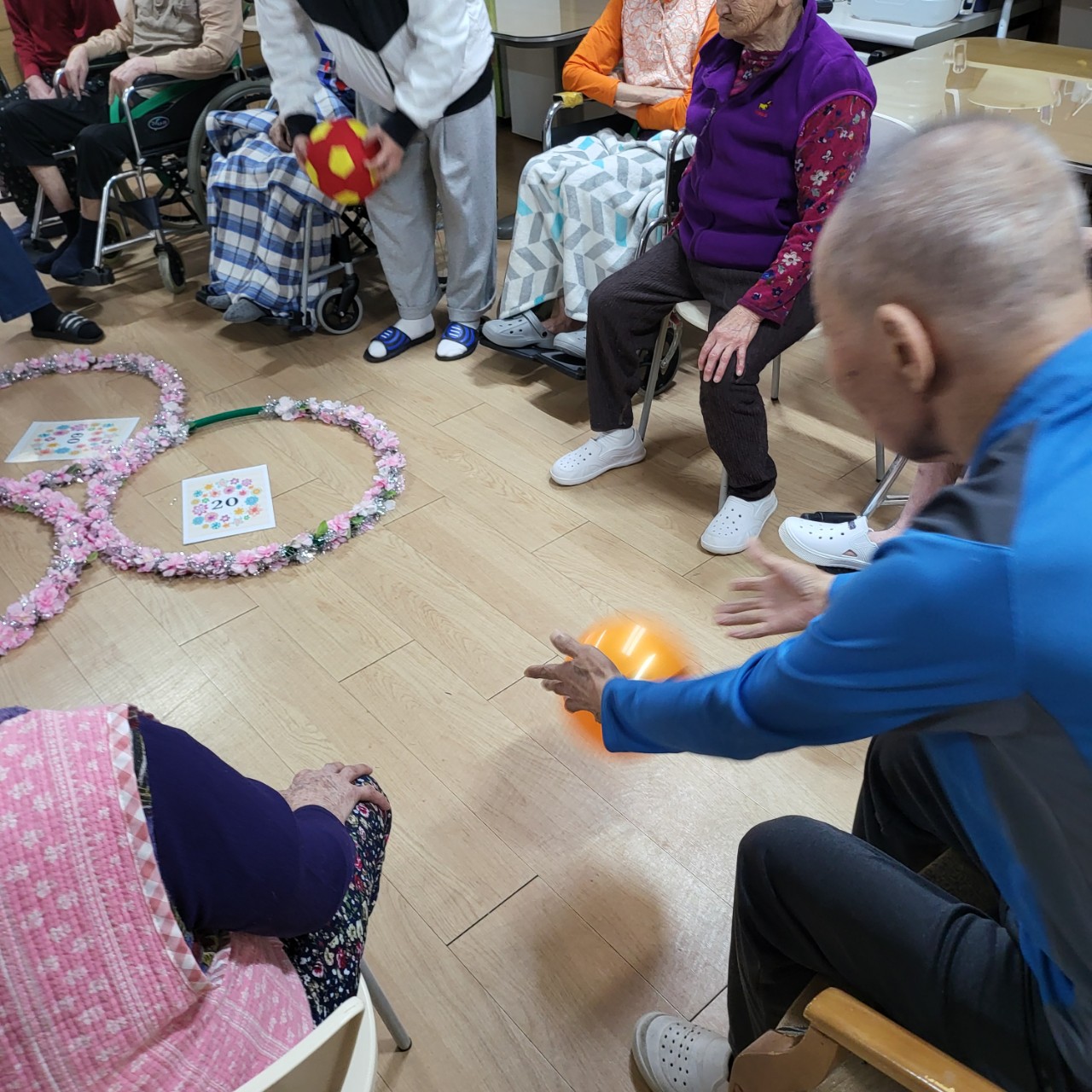 꽃터널에 공을 던져 청춘으로 돌아가는 체험활동을 한다.