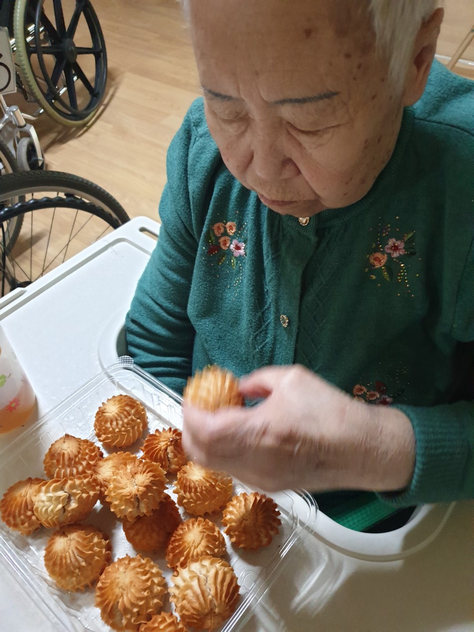 - 2024.05.13 0510(금) 초지 어르신들 야간 간식은 부드러운 상투 과자입니다 맛있게 드시고 안녕히 주무세요~♡