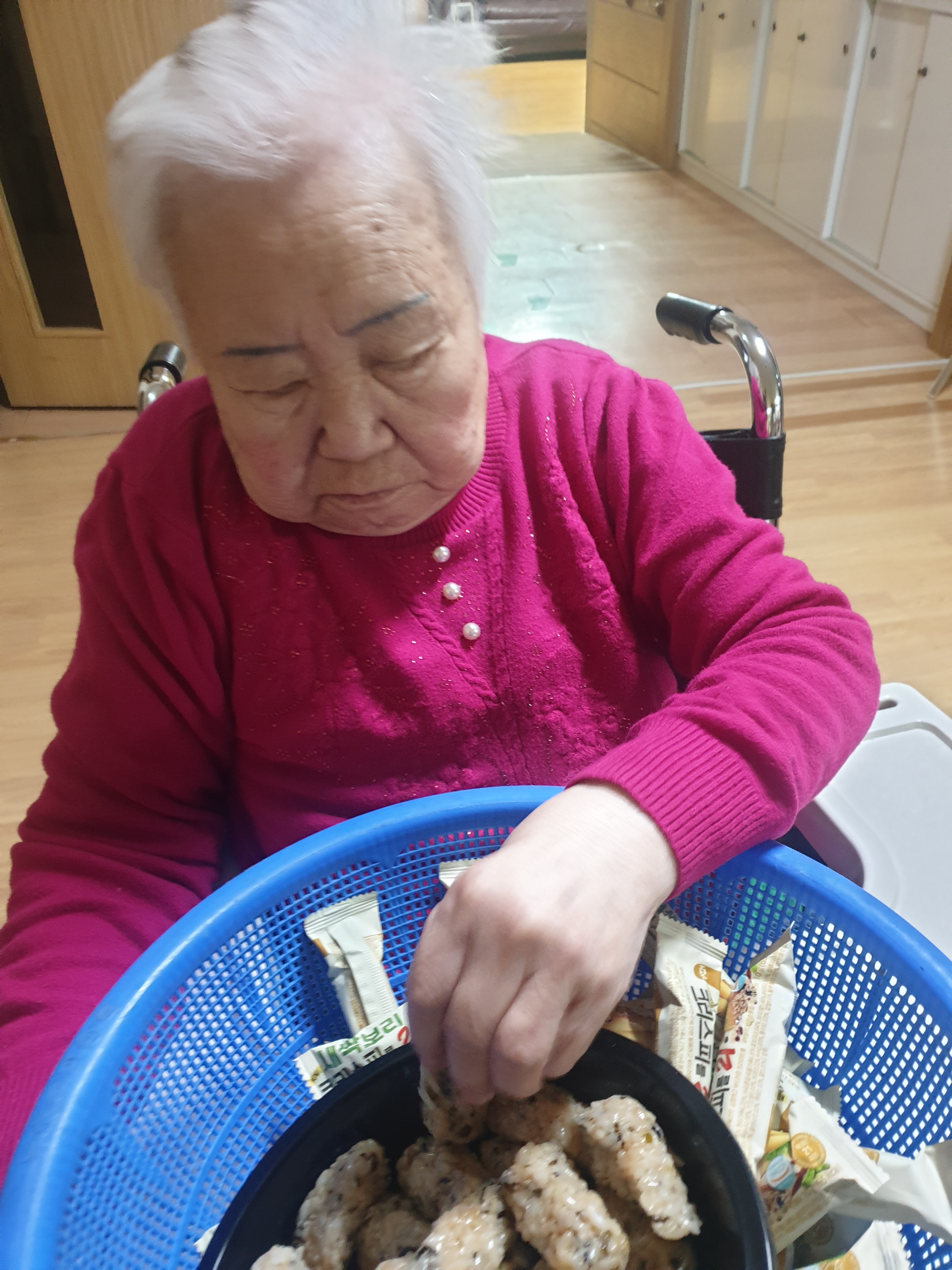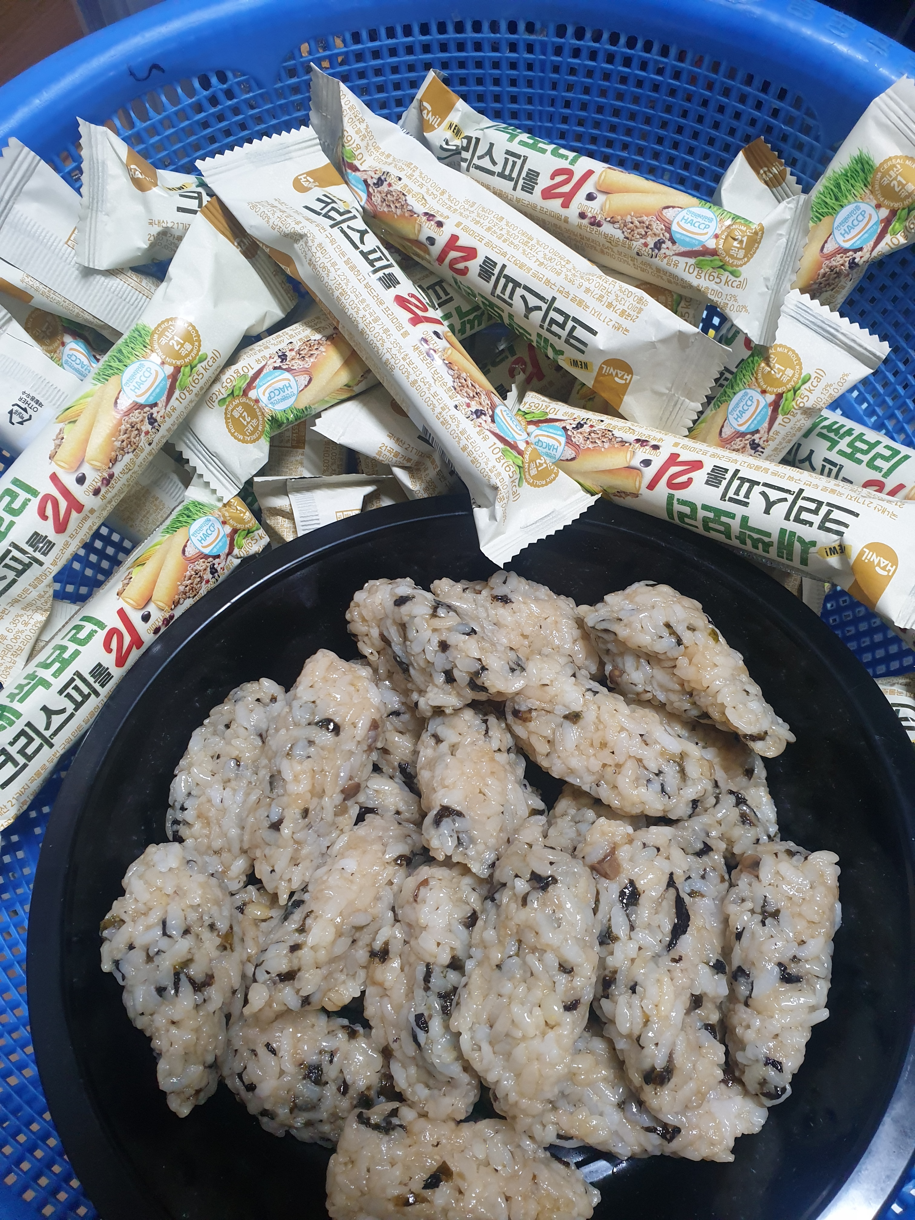 - 2024.03.25 0322(금)초지어르신들 야간간식 간장버터김주먹밥 과 부드러운쌀과자입니다~♡