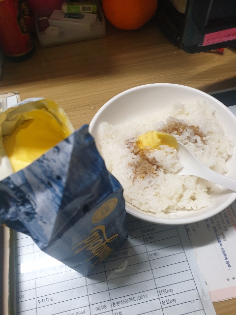 0304(월) 초지어르신들 야간간식 쌀과자입니다 맛있게드시고 좋은꿈 꾸세요^^진숙어르신 컵라면 규남어르신 버터간장비빔밥^^