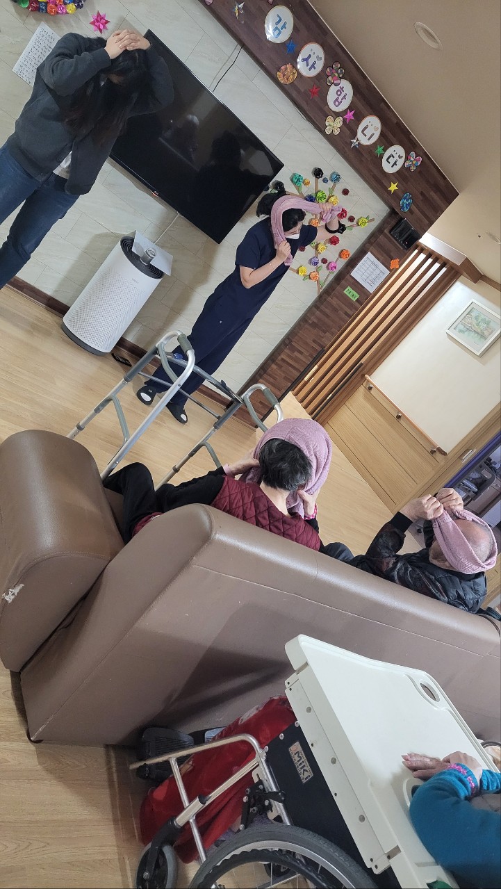 ① 어르신들을 중앙홀로 모신다. (모시기 힘든 어르신을 각 방으로 찾아간다.)