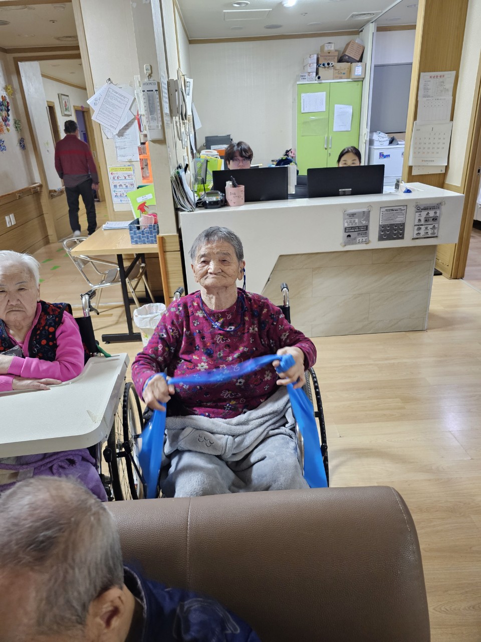 ② 어르신들에게 탄성밴드를 배분해 드린다.