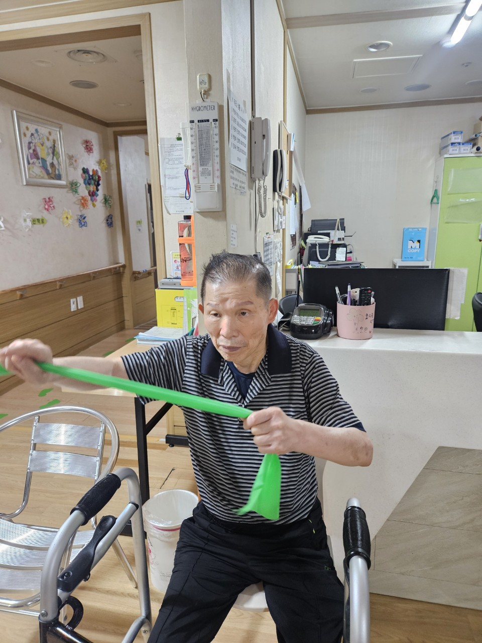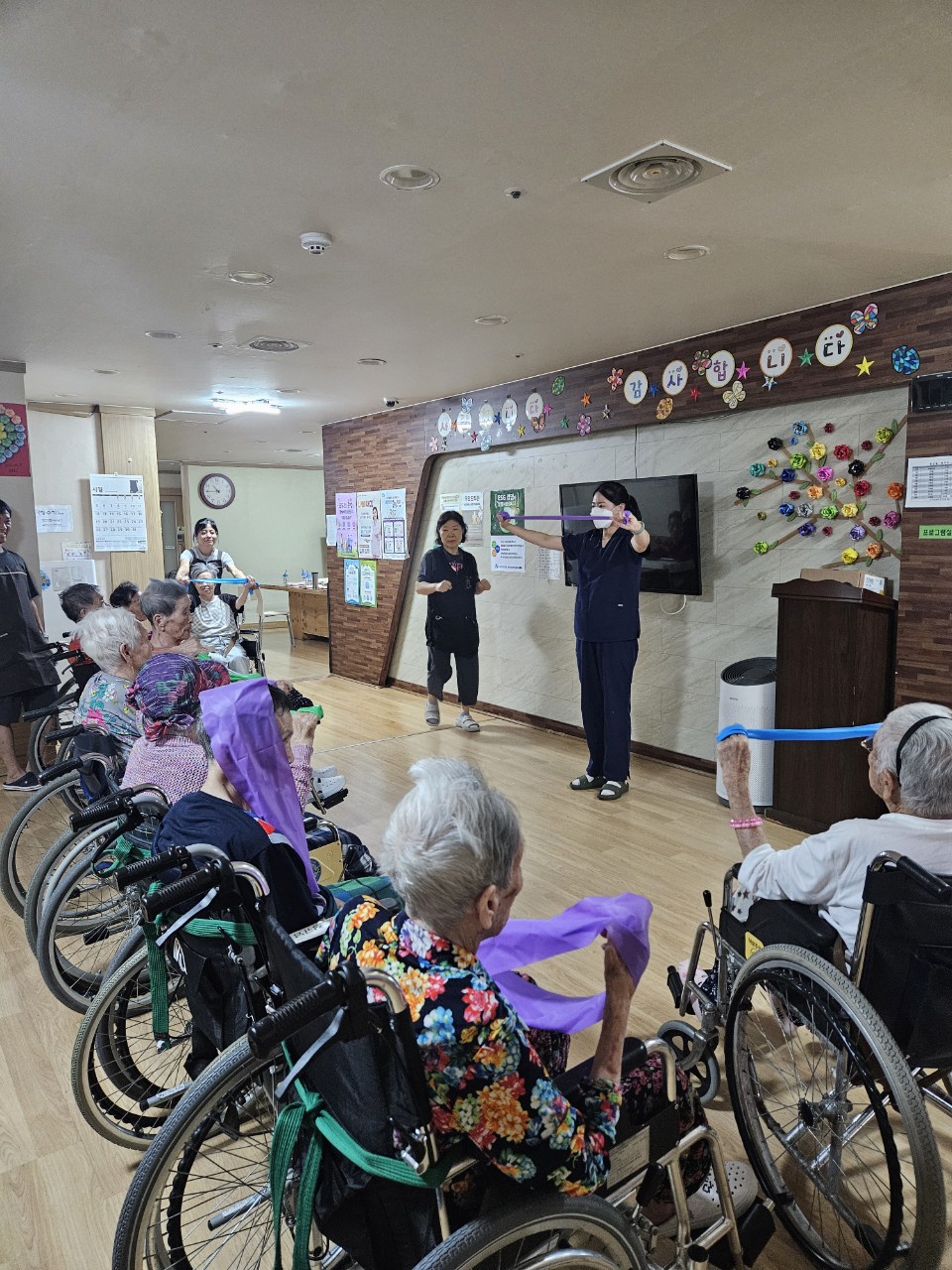 ② 어르신들에게 탄성밴드를 배분해 드린다.
