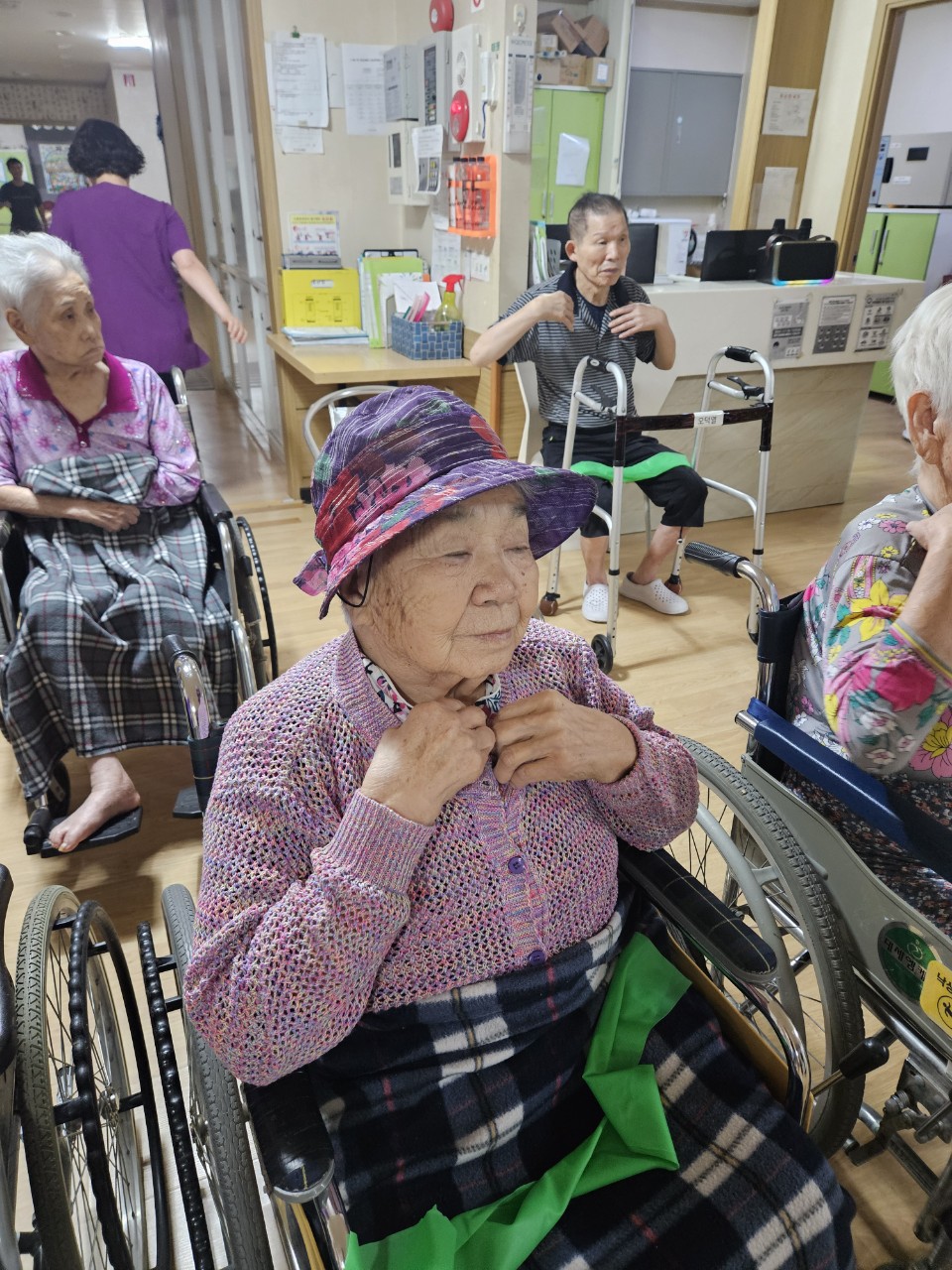 ① 어르신을 중앙홀로 모신다.