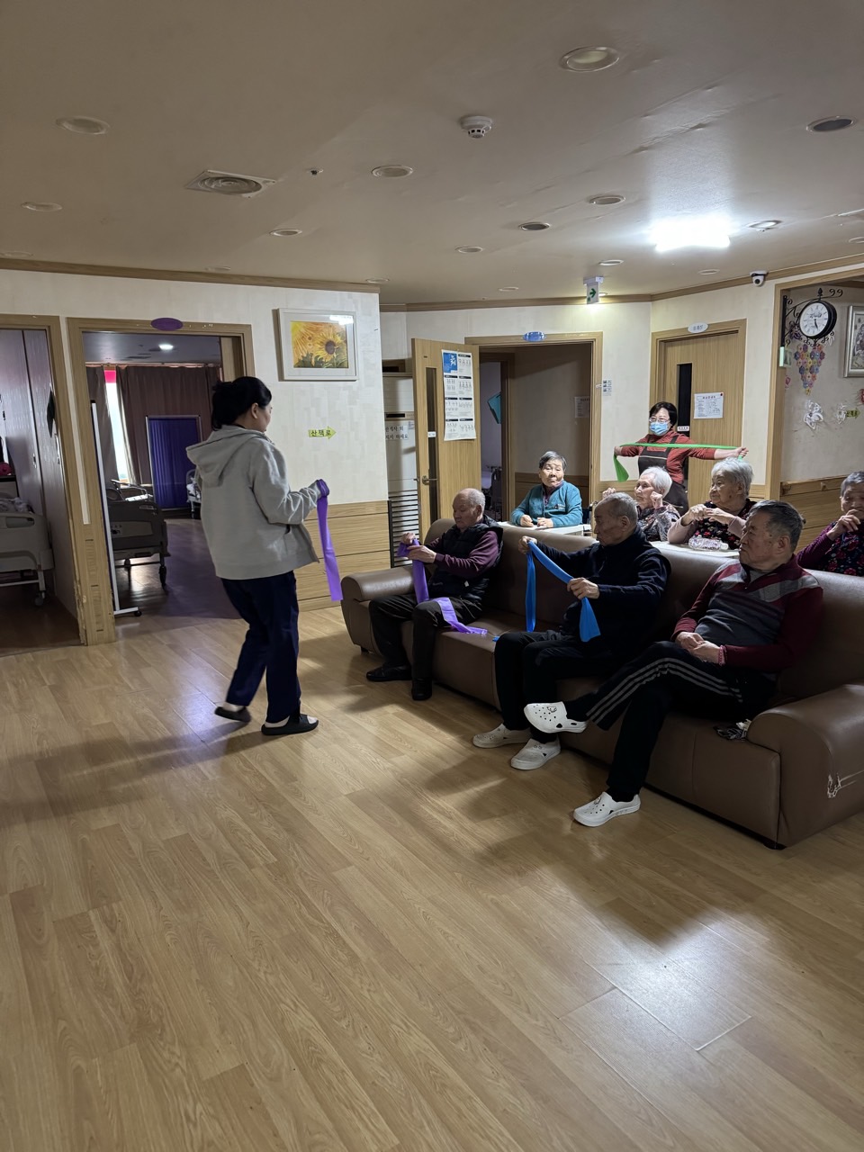 ④ 어르신 옆에서 격려 하고 도와드리며 운동을 진행한 후 마무리 한다.