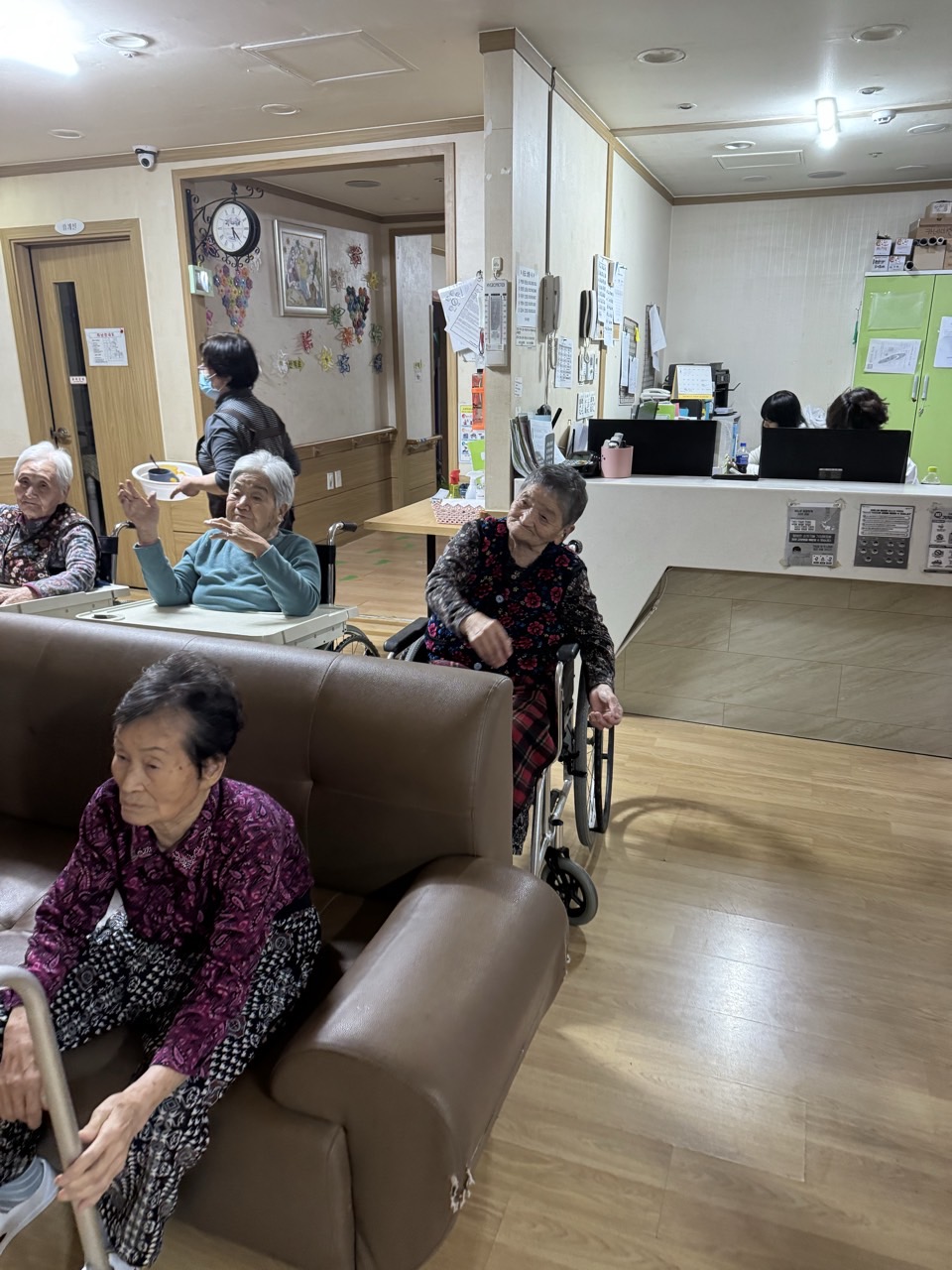 ① 어르신들을 중앙홀로 모신다. (모시기 힘든 어르신을 각 방으로 찾아간다.)
