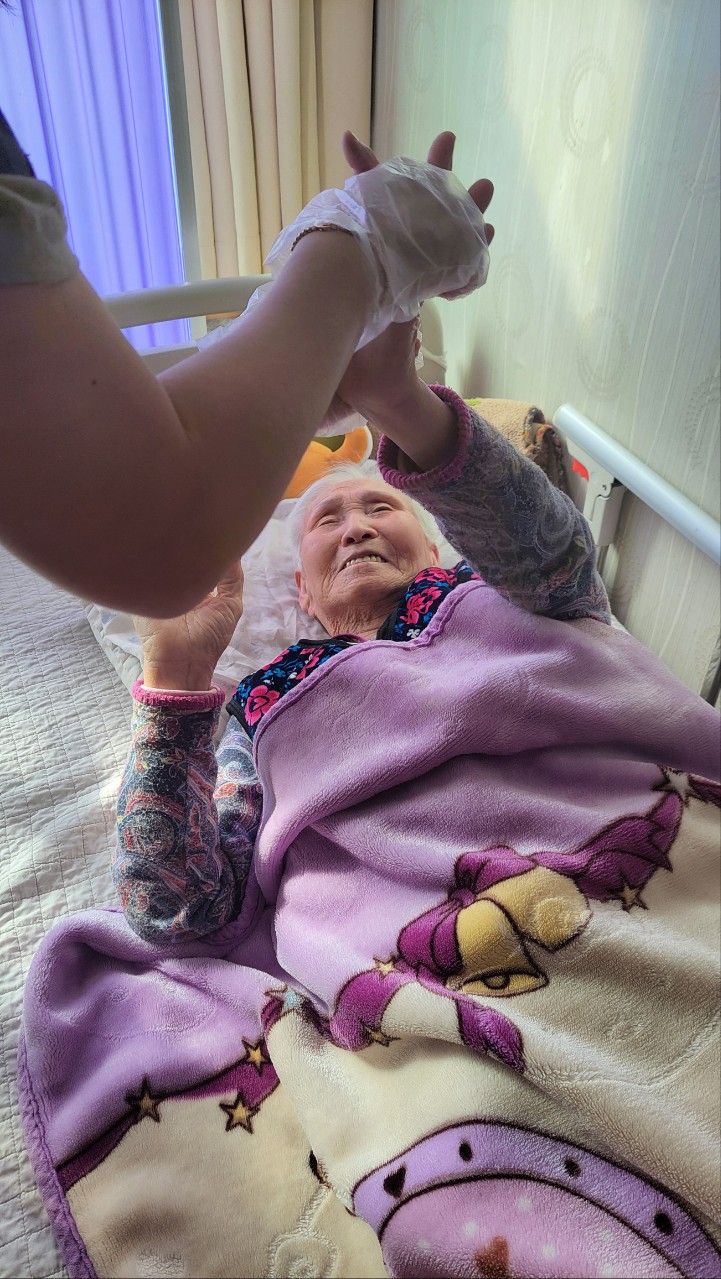 앉거나 누운 자세에서 부분 도움을 받아 맨손 운동을 해본다.
