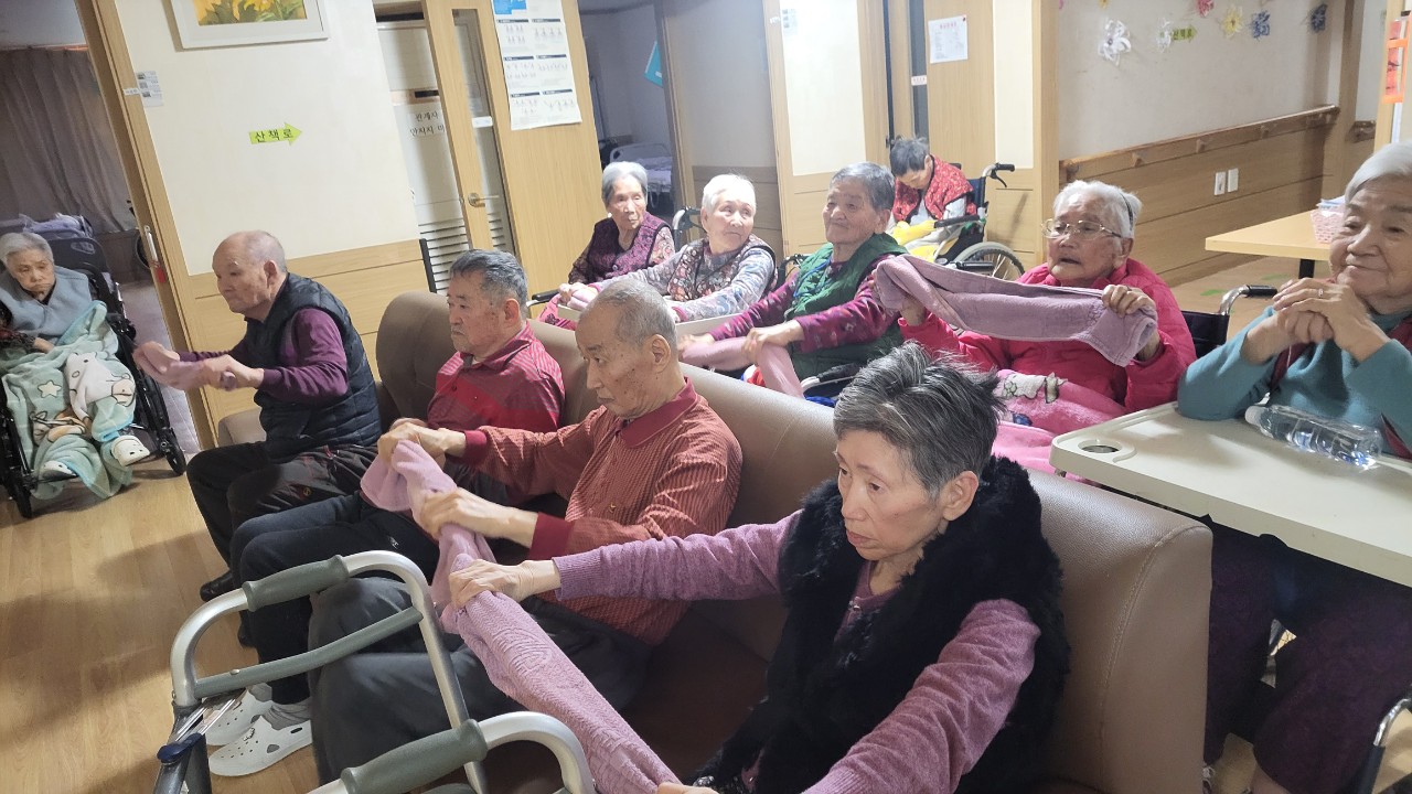 ① 어르신들을 중앙홀로 모신다. (모시기 힘든 어르신은 각방으로 찾아간다.)
