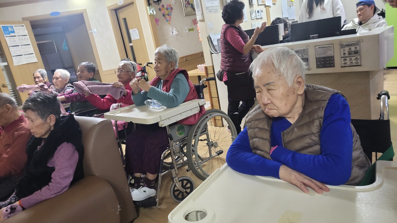 ① 어르신들을 중앙홀로 모신다. (모시기 힘든 어르신은 각방으로 찾아간다.)