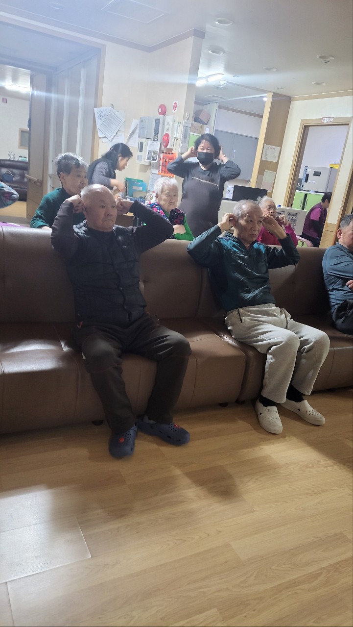 ② 음악을 틀고 체조영상을 보여드린다.