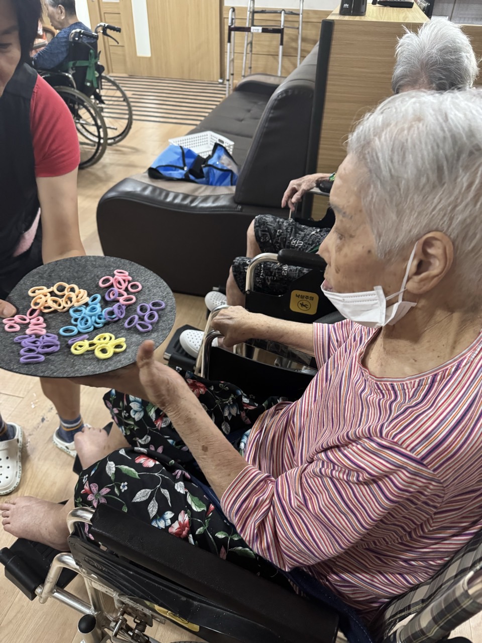 2. 어르신들이 음악을 들으며 편하게 휴식하시고, 마음이 편안해 지도록 돕는다.